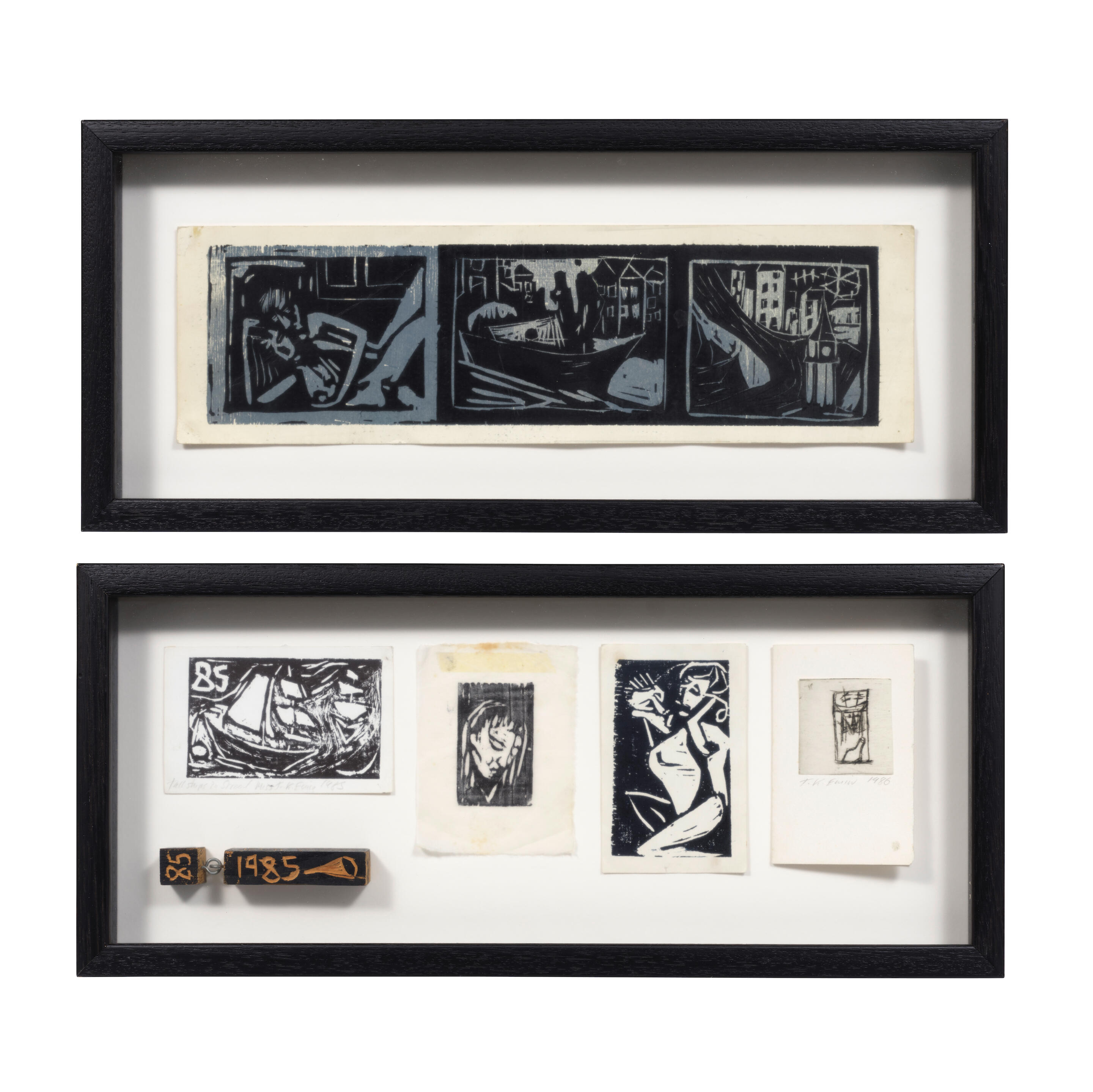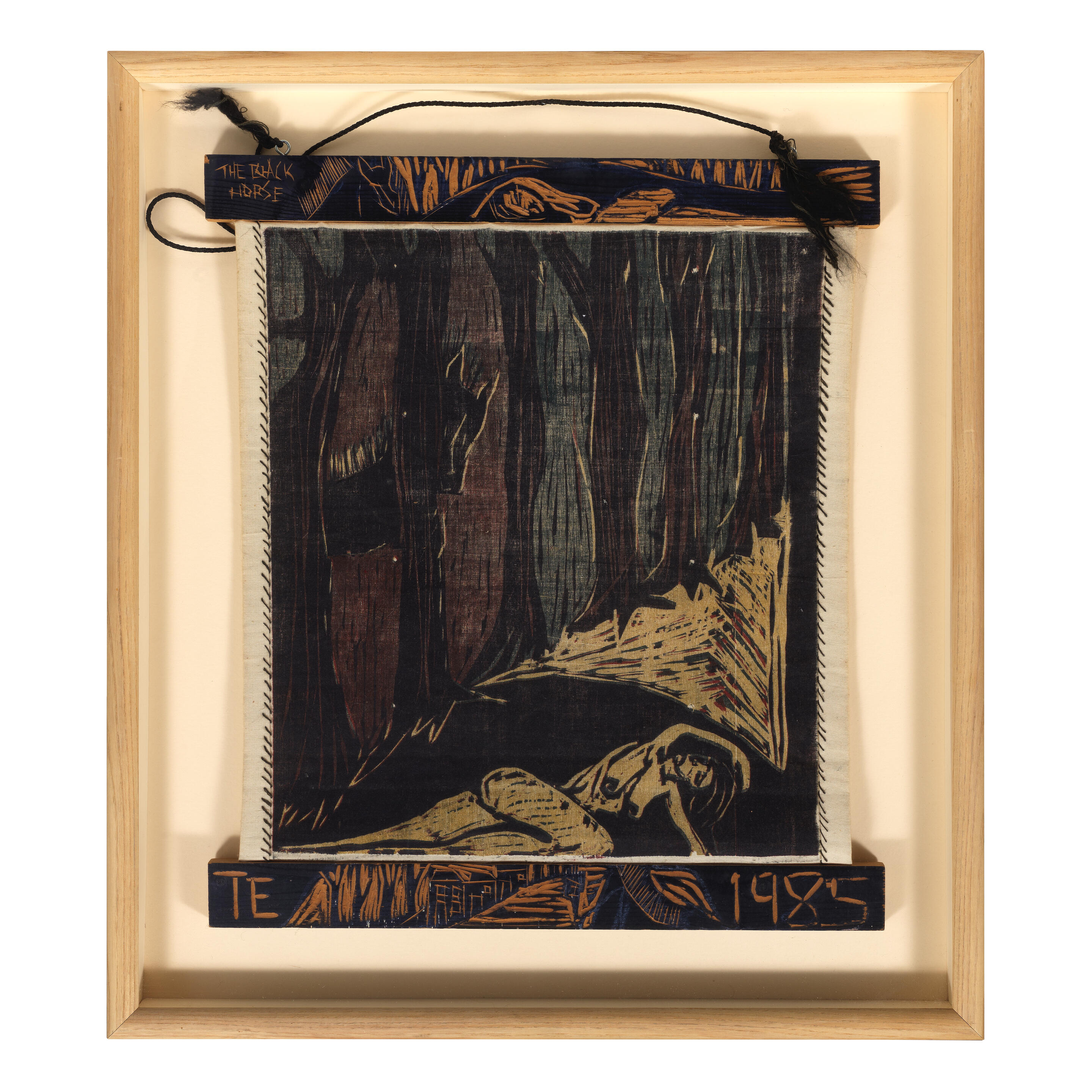 Unique woodcut in five colours, 1985, on linen, attached to ...