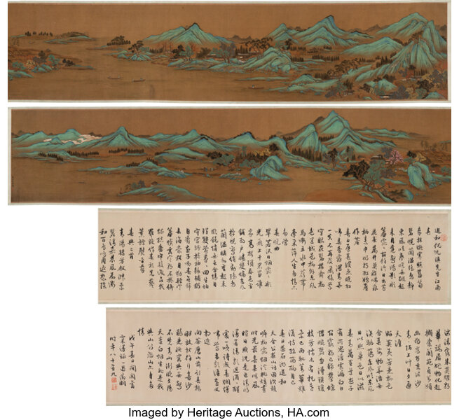 Blue and green landscape and Calligraphy