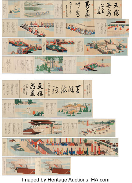 Pair of Illustrated Handscroll of Imperial Ceremonial Rites, Taisho I (1912...