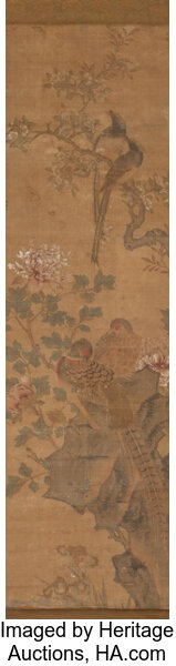 PAnonymous (Chinese, 19th Century), Pheasants and Flower Blooms, ink and co...