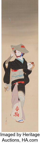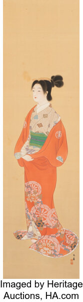 Unknown Artists (Japanese, 19th century), Bijin in Kimono, ink and color on...