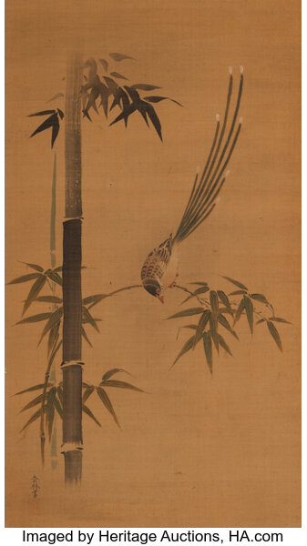 Unknown Artists (Japanese, 19th century), Bird and Bamboo, ink and color on...