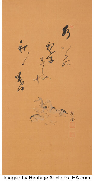 Kinen (Japanese, 19th century), Deer, ink and color on silk