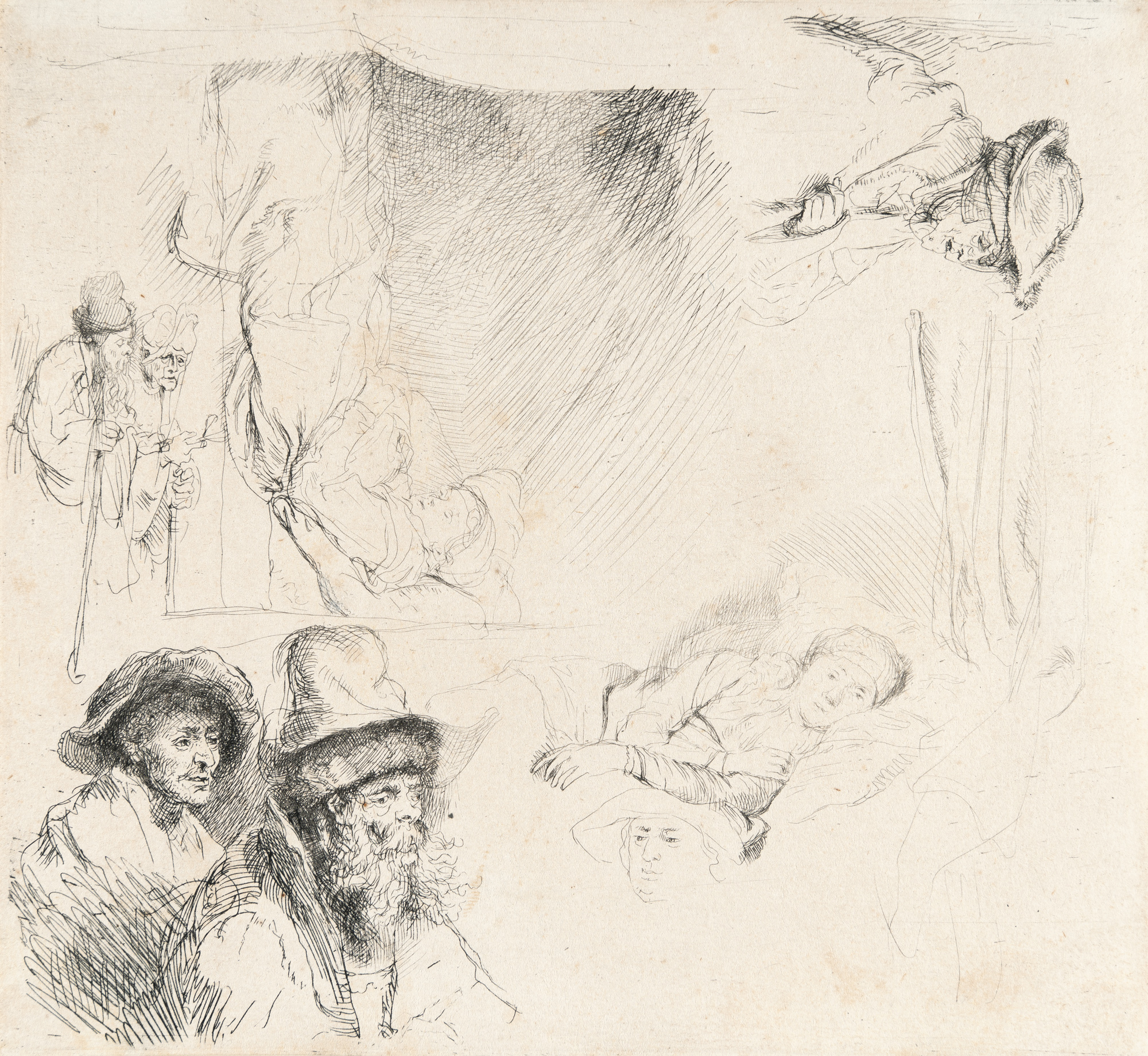 Sheet of Studies, with a Woman Lying Ill in Bed