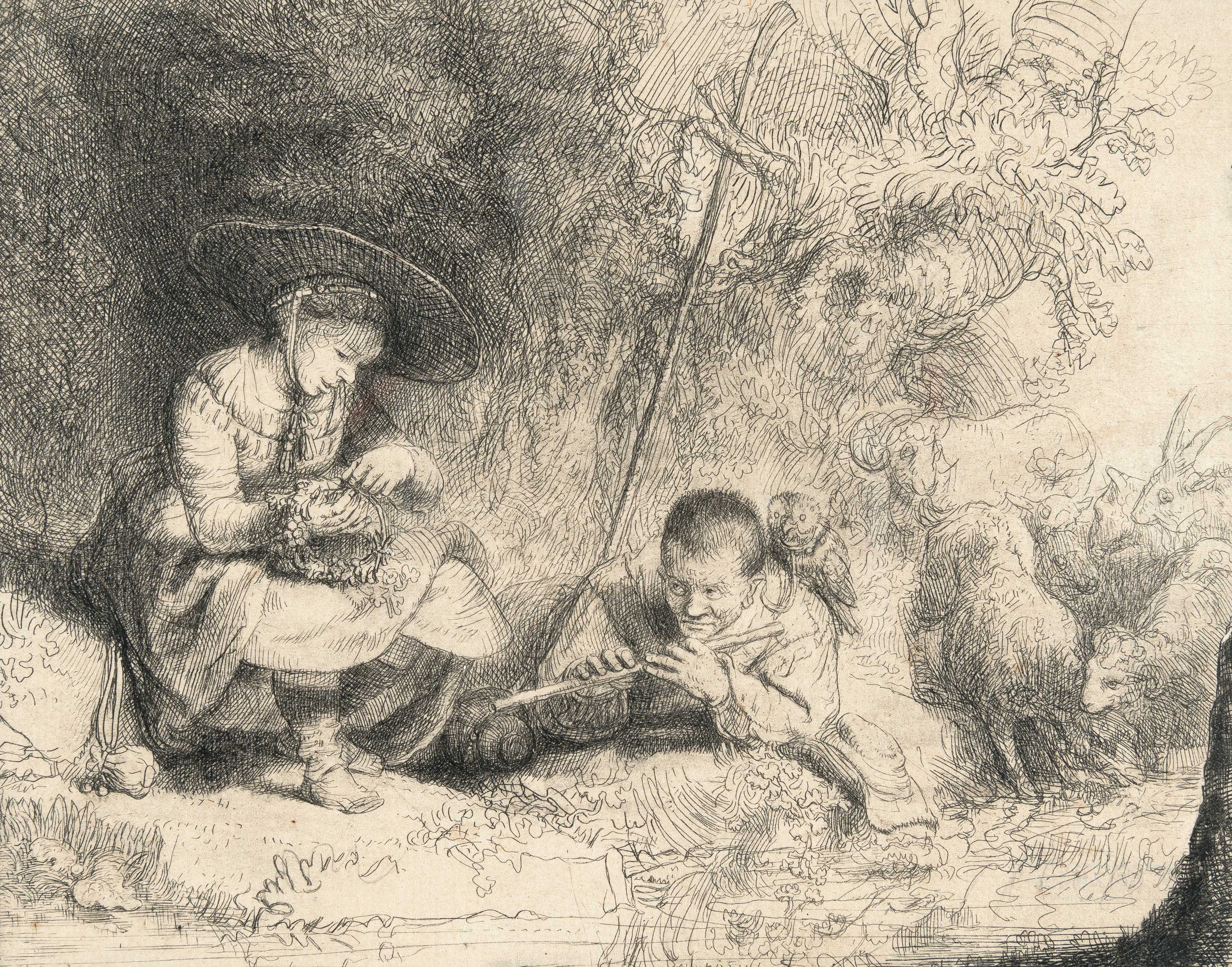 Paysage italianisant avec un jeune berger jouant de la cornemuse