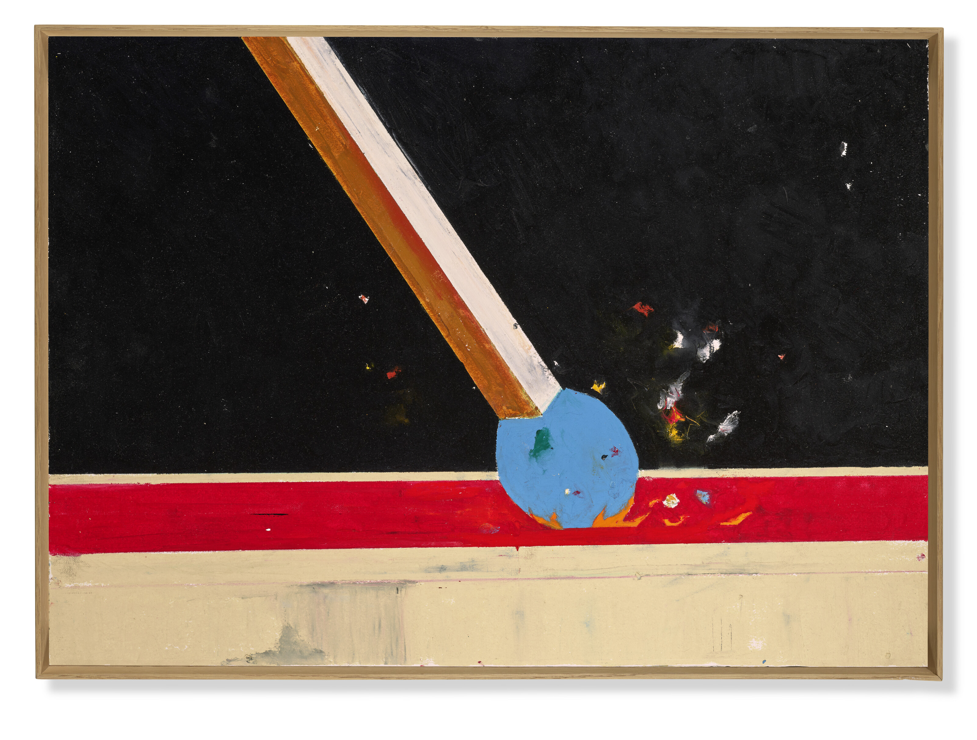 huile, crayon gras et graphite sur papier marouflé sur panneau; dans un cadre d'artiste