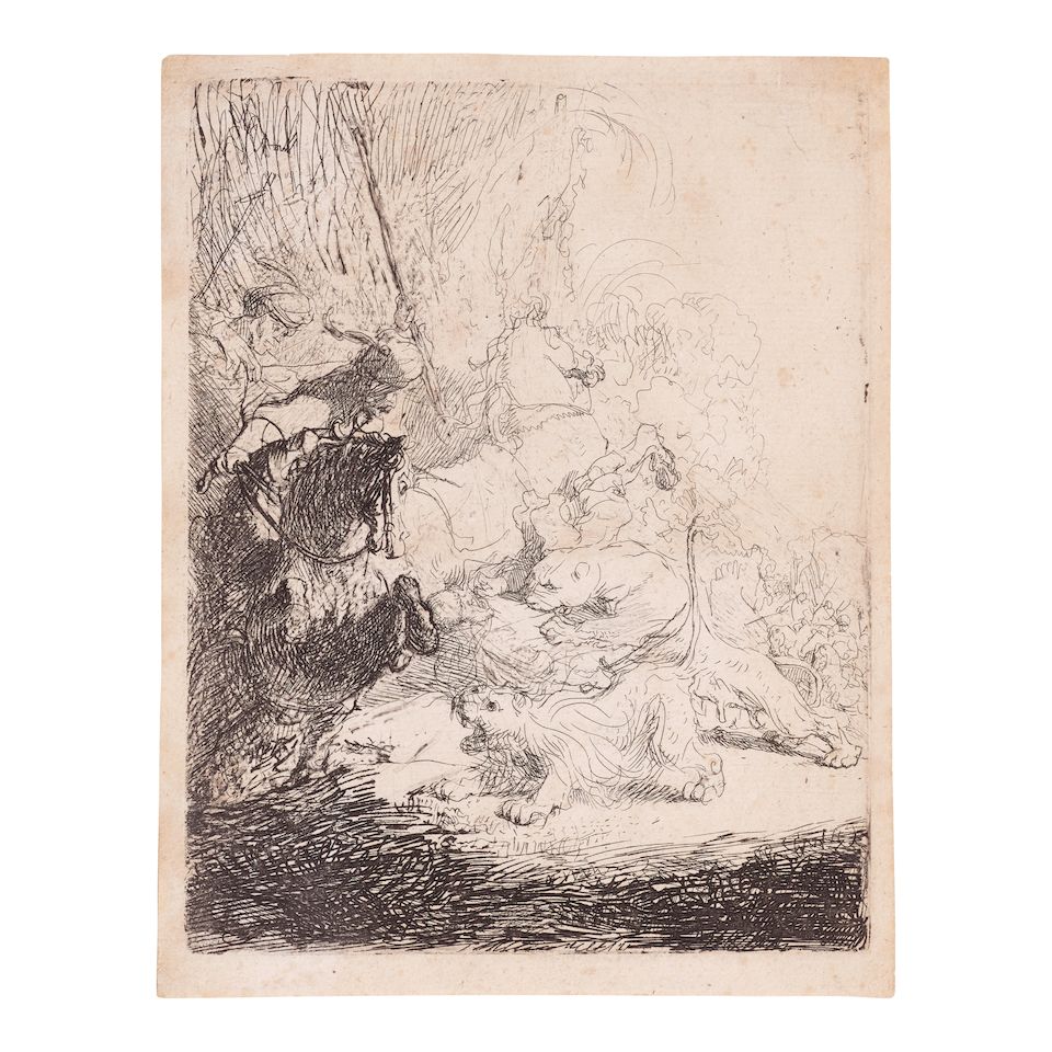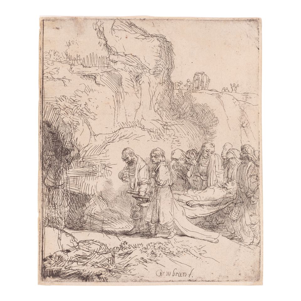 Etching on laid paper with partial Strasbourg bend watermark (Ash/Fletcher 35), New Hollstein's first and only state, a fine lifetime impression with slight burr to the left of the pool, with margins