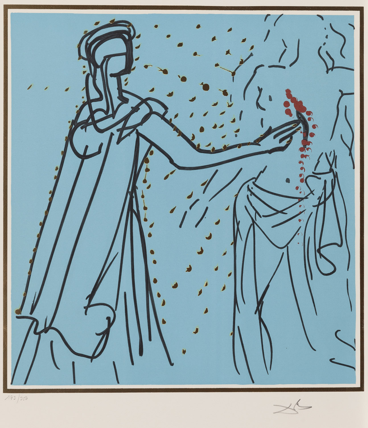 The complete set of six etching and aquatints in colors with embossing, on Rives BFK paper, with full margins, with justification page, all loose (as issued), all contained in the original black paper-covered heavy board portfolio with gold printed title and artist's name
