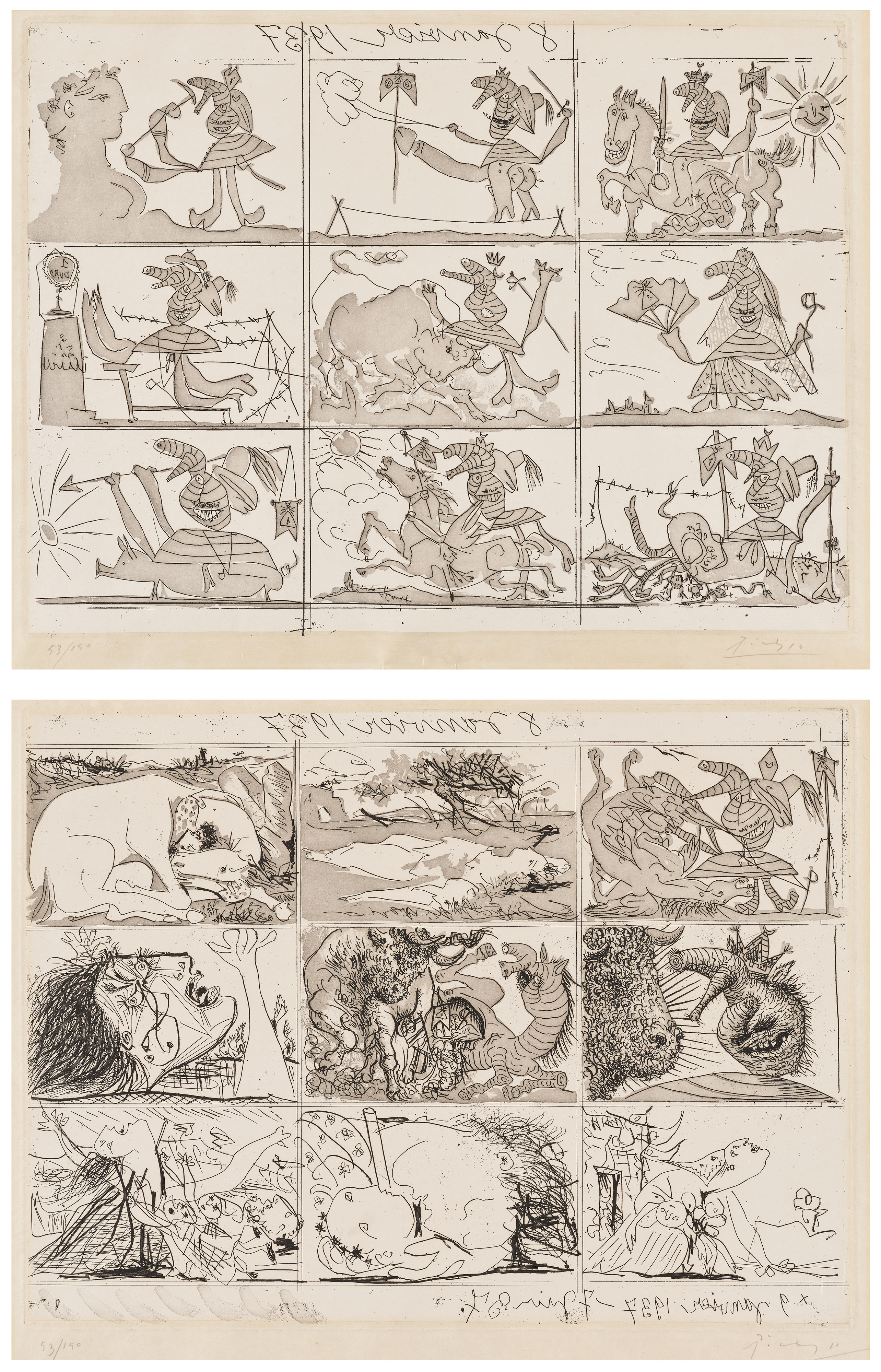 The complete set of two etchings with aquatint, on Chine collé to Japon anciens paper, with full margins