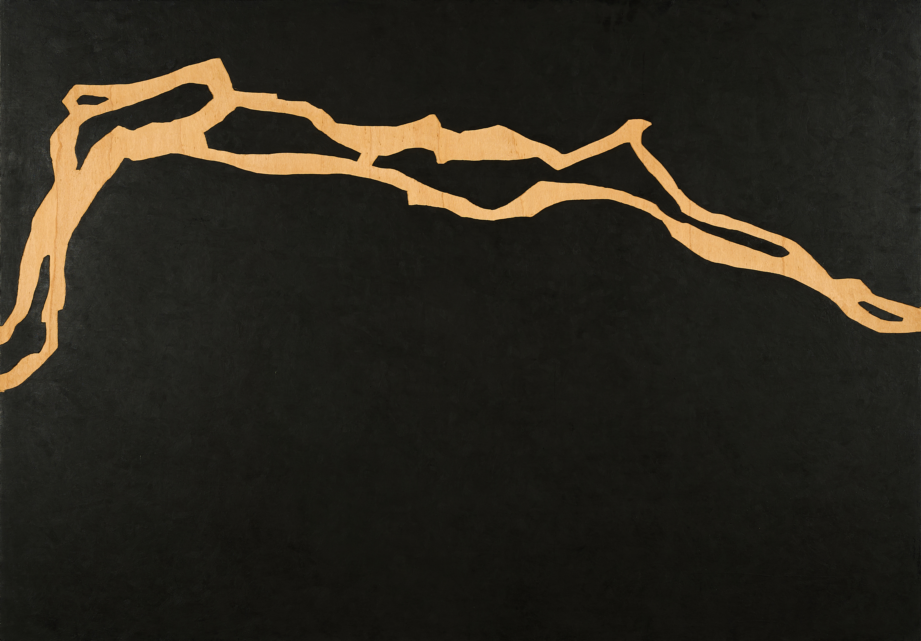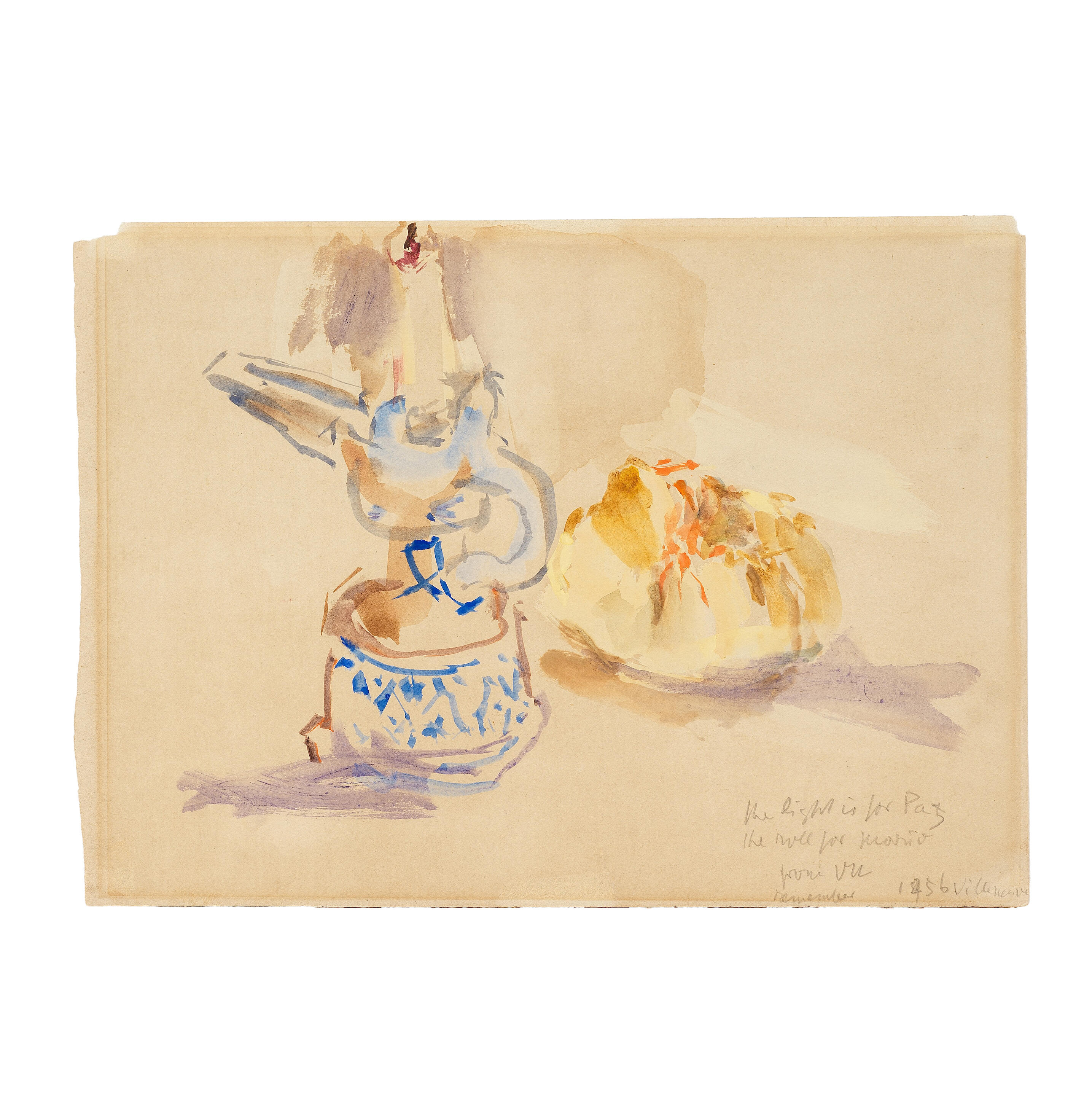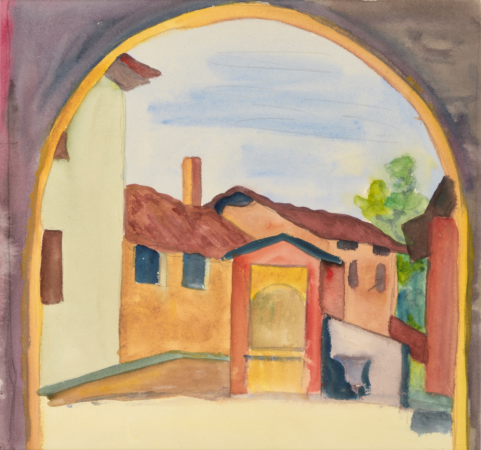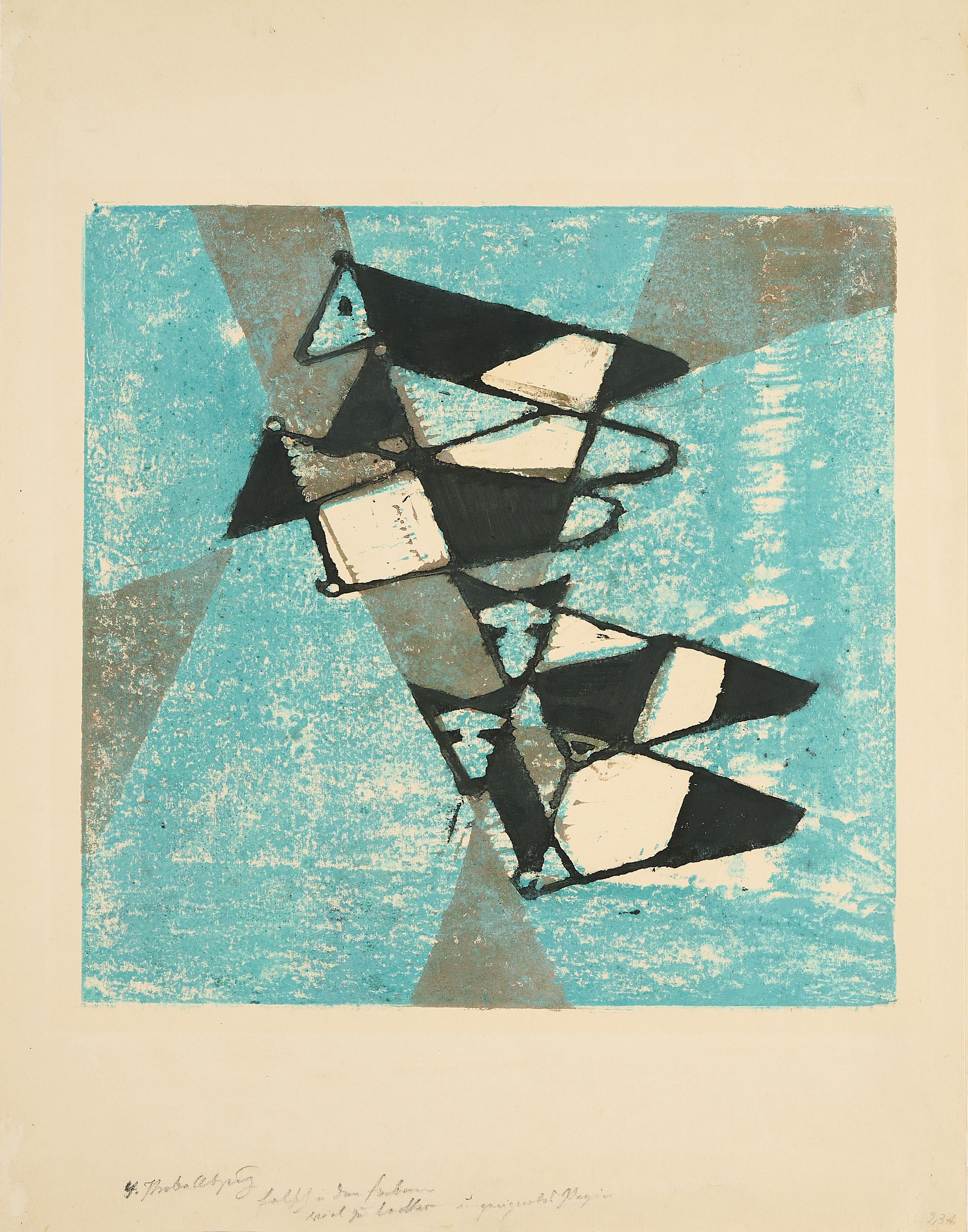Aquarell auf Papier, zerschnitten und neu kombiniert, mit Aquarell eingefasst, auf Karton