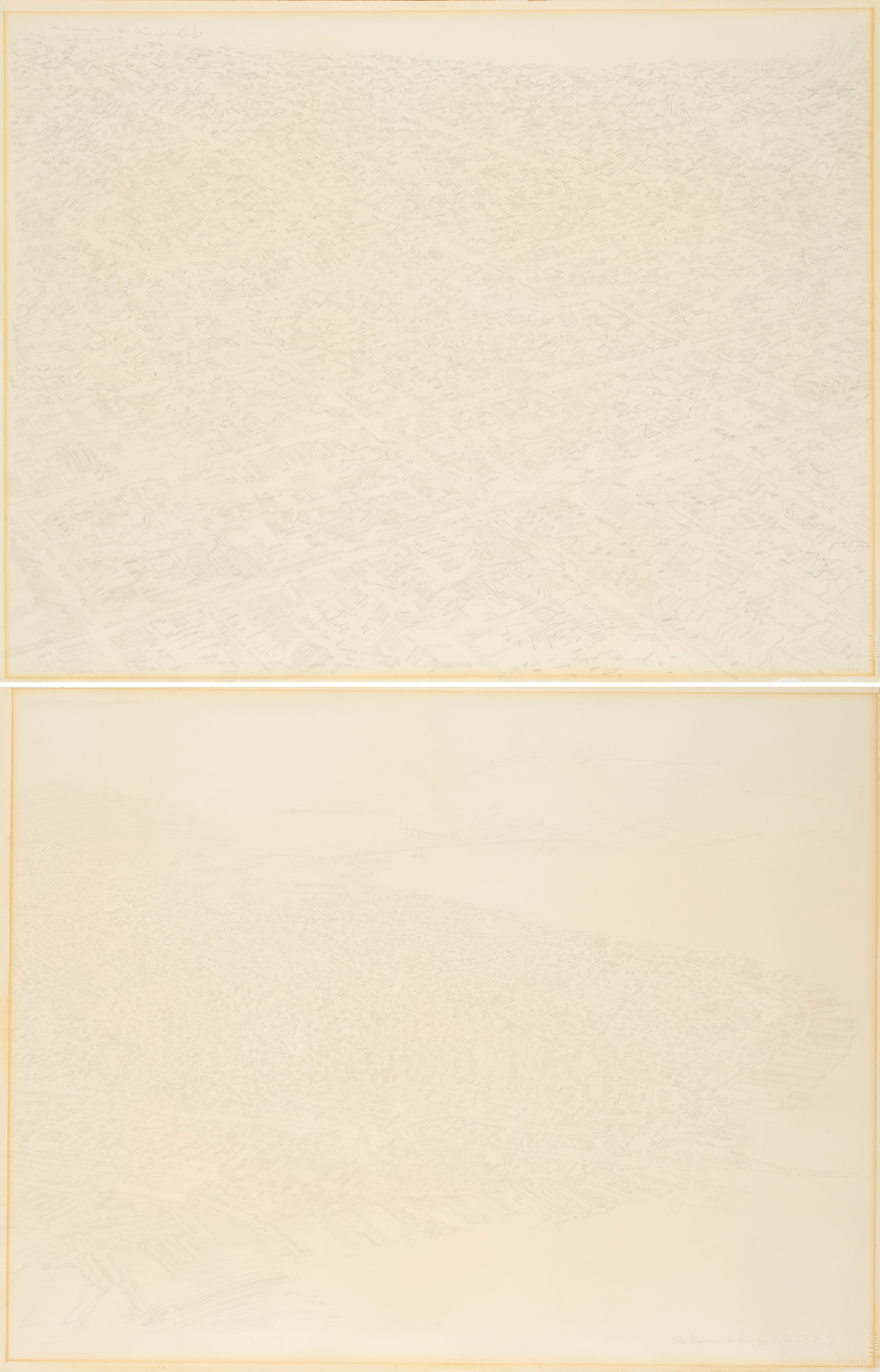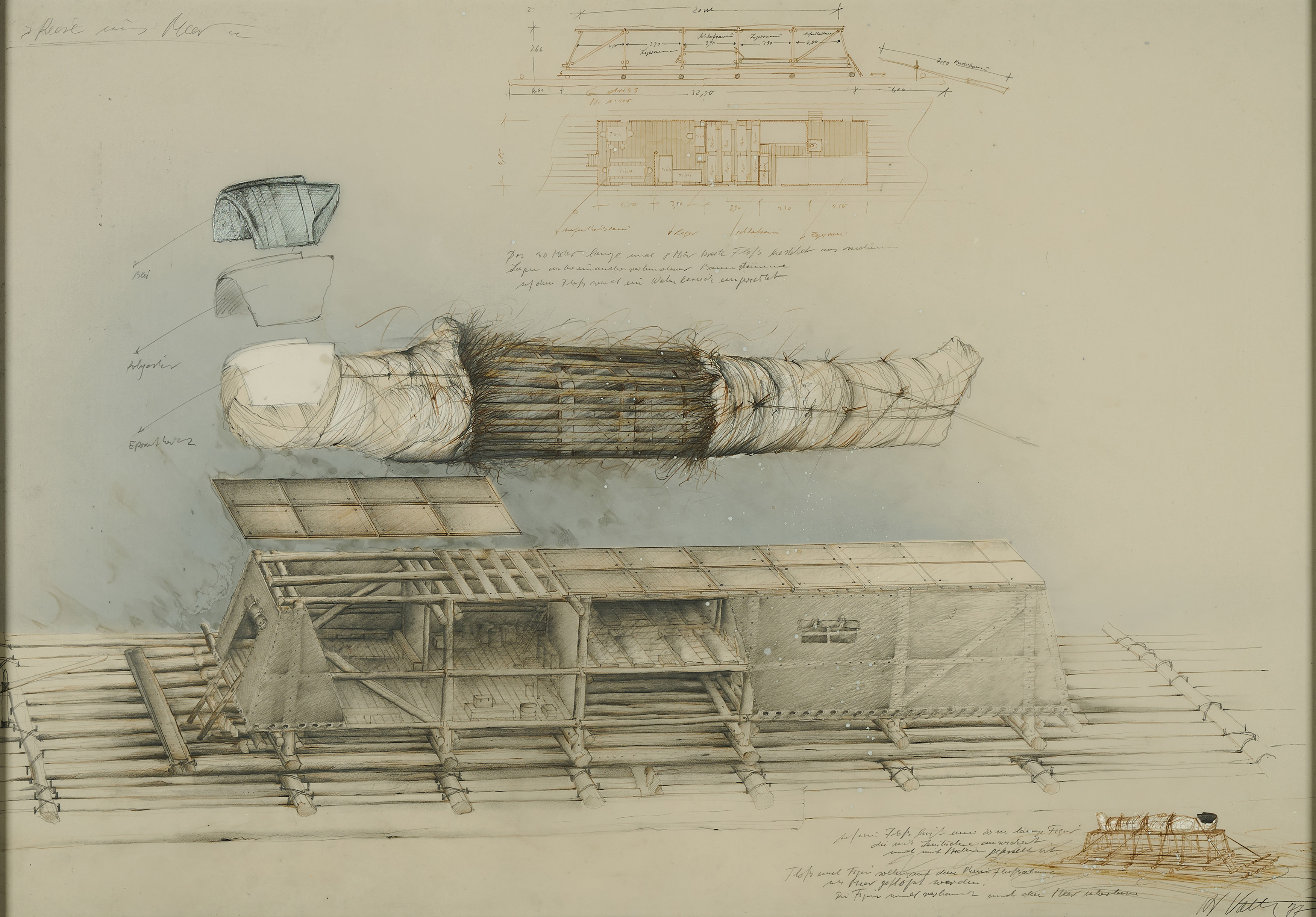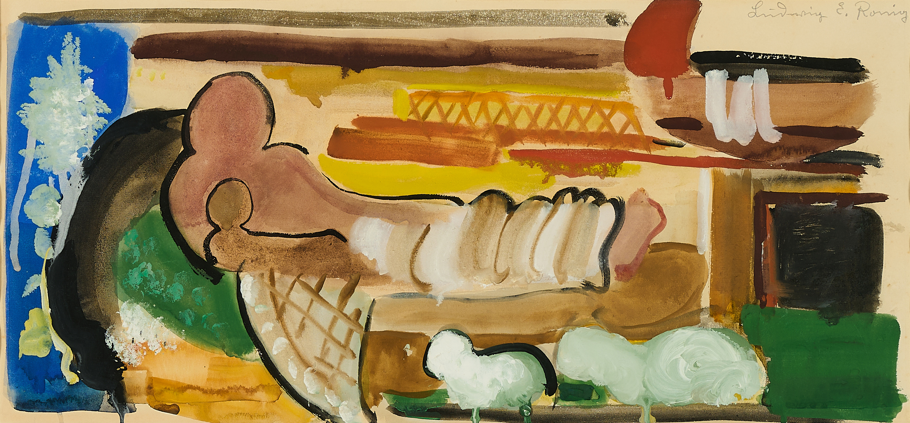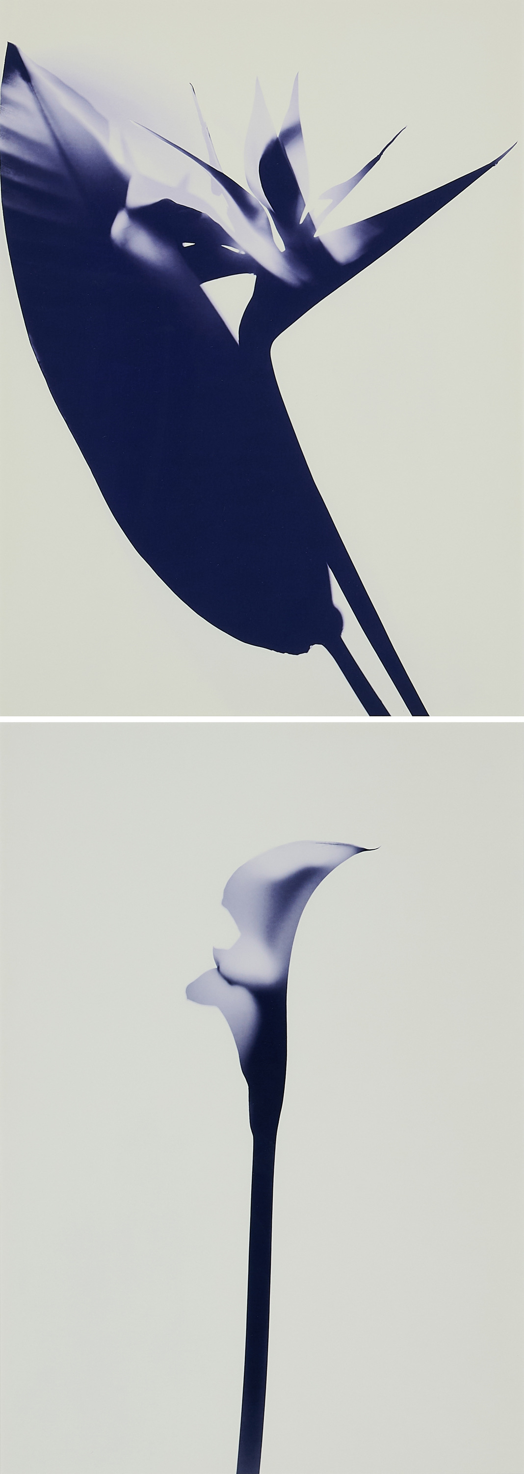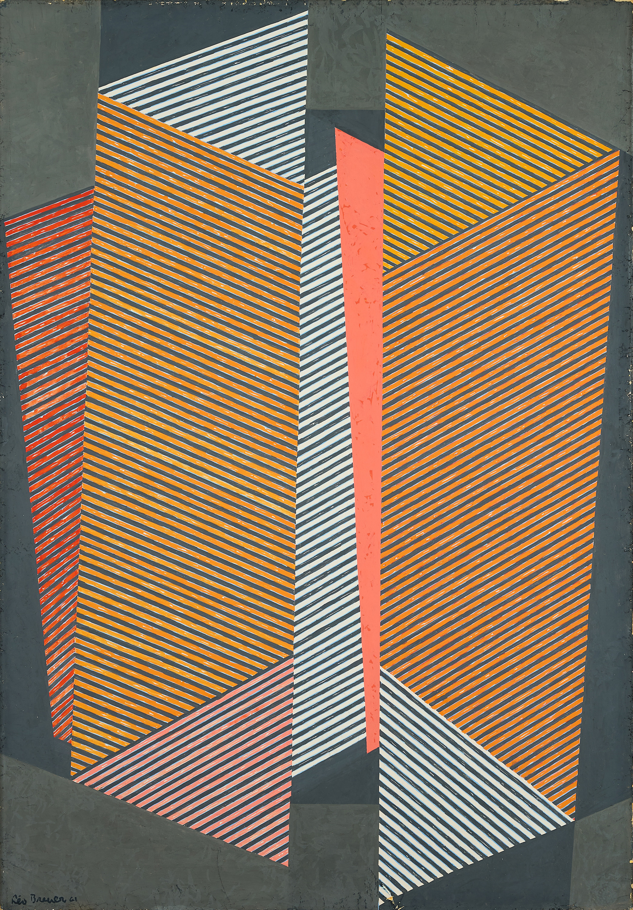 Blau/Rot Überkreuzung auf schräghängenden Glasscheiben