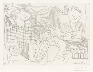 Drypoint on Montval paper with Picasso watermark, with stamped signature, one of approximately 57 proofs printed by Lacourière, Paris, 1942, with the Marina Picasso Collection blue ink stamp on the reverse (Lugt 3698), with full margins, framed