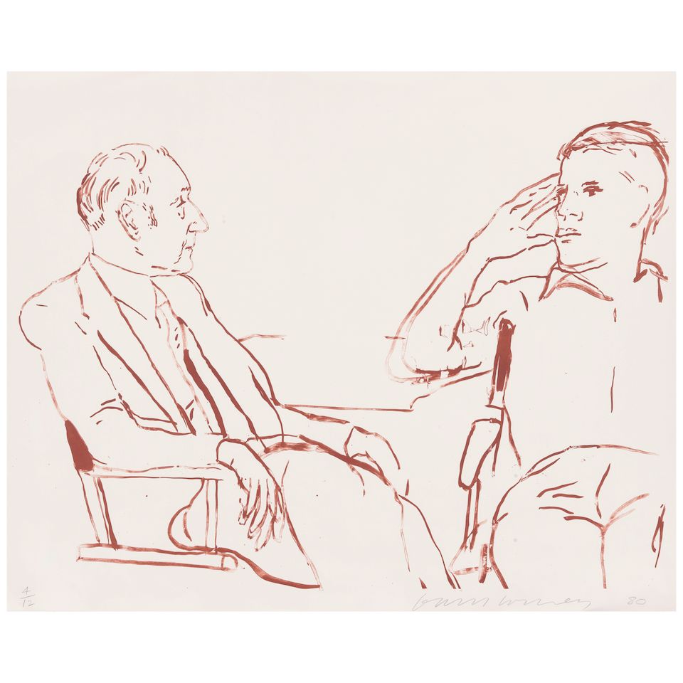 Offset lithograph printed in colours, 1969, signed in pencil, from the edition of unknown size, published by André Emmerich Gallery, New York, a proof avant la lettre of the poster for the exhibition David Hockney at André Emmerich, 26 April to 15 May