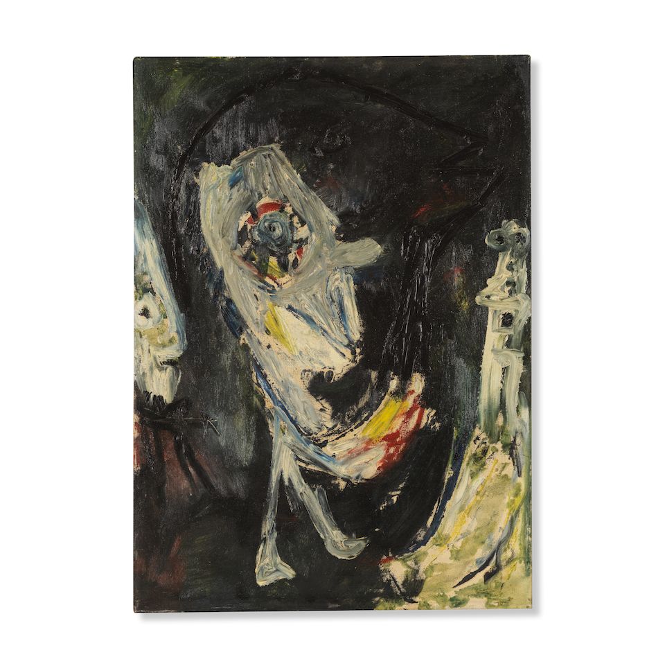 Mischtechnik auf Papier, auf Holzplatte kaschiert; gerahmt