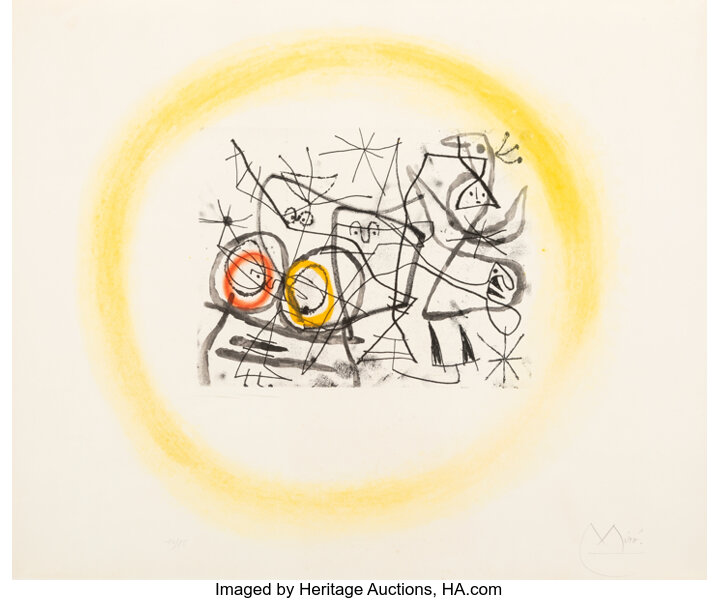 Etching with hand-coloring on Arches paper, initialed in pencil and numbered 61/100, published/printed by Tériade/Raymond Haasen, Paris, with margins, framed, colors slightly attenuated