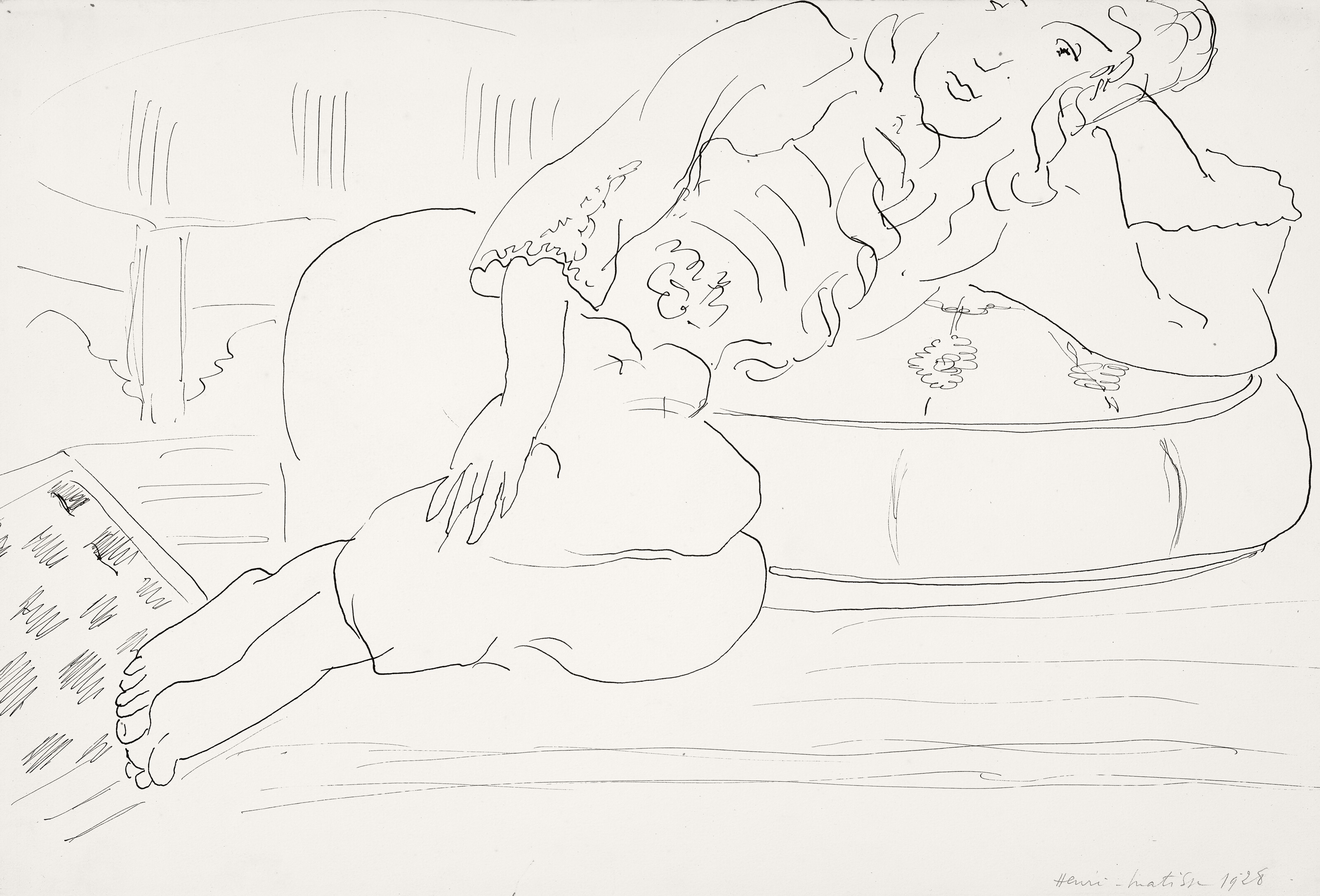 sanguine, charcoal and white heightening on paper squared for transfer laid down on paper
