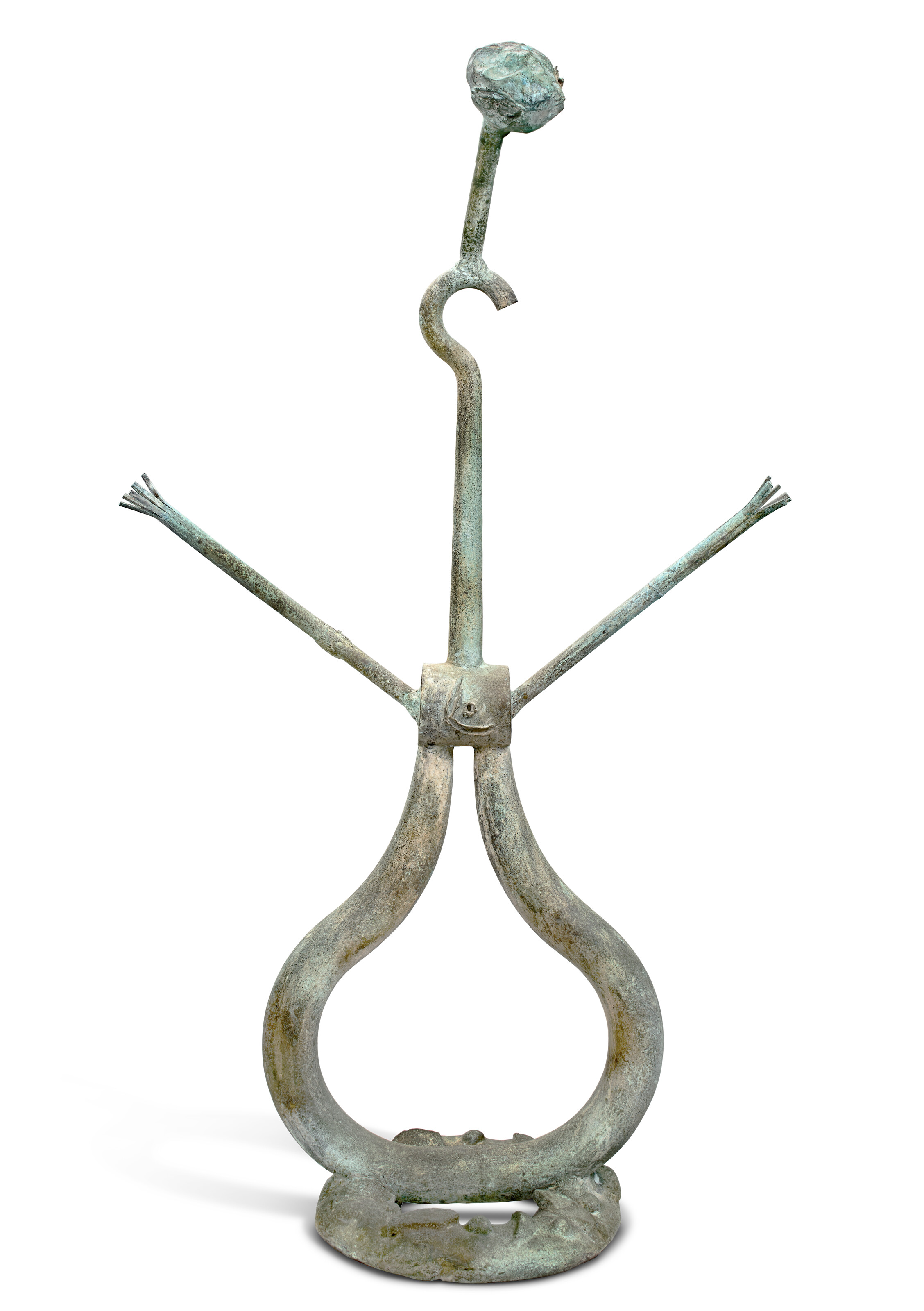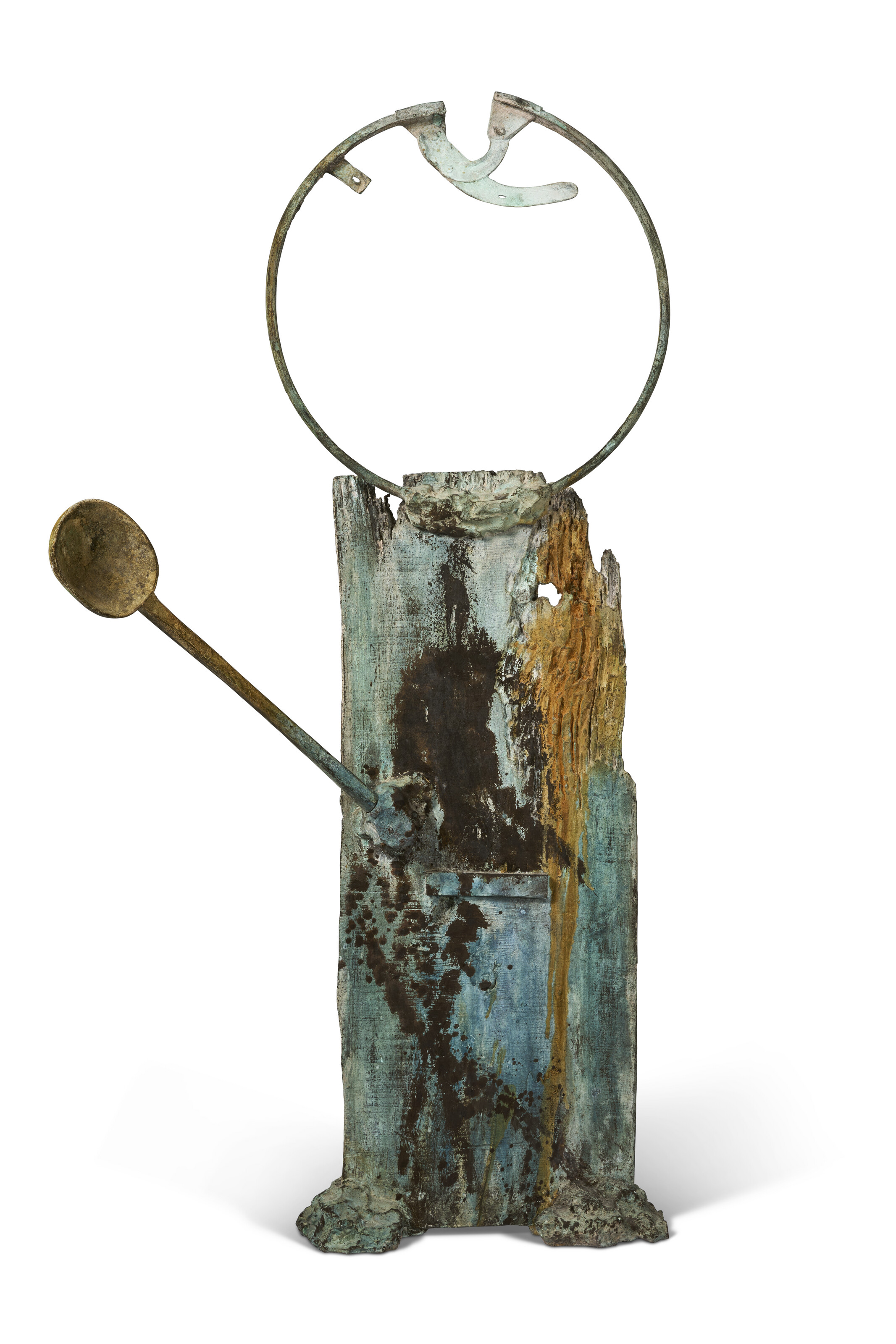 oil, watercolor and brush and black ink on paper laid down on cradled panel