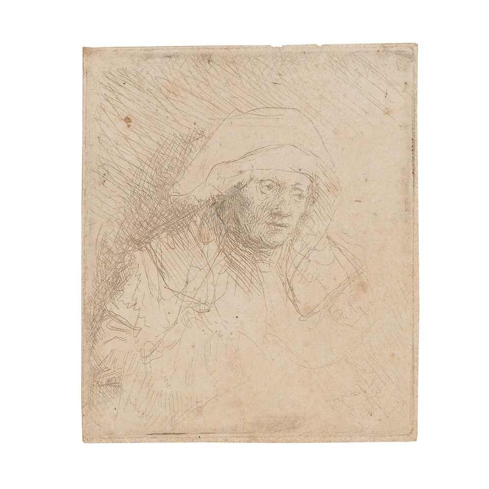 Etching, circa 1645, on laid paper, a later impression of this lightly bitten print, New Hollstein's second, final state, with thread margins, unframed