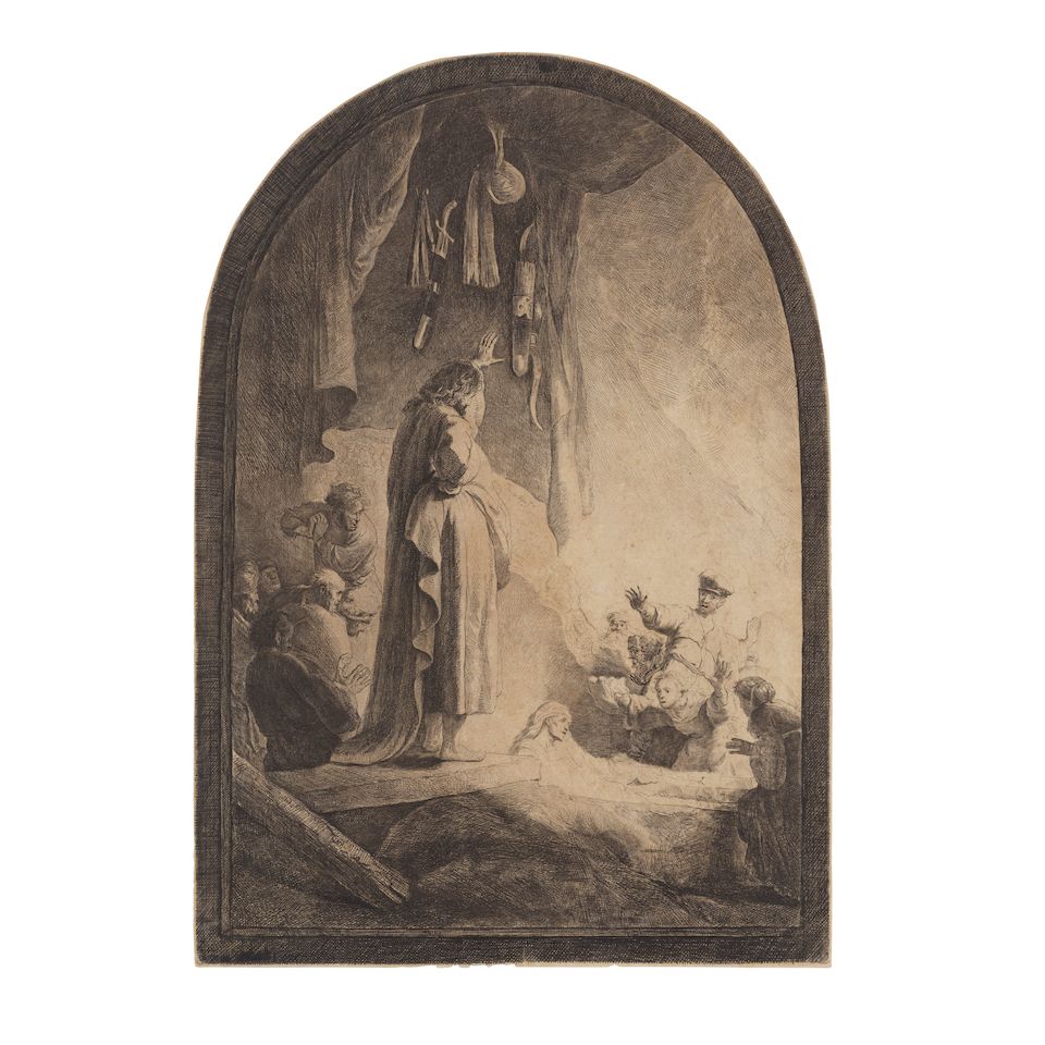 The Resurrection of Lazarus (large pl.). Circa 1632. Etching and drypoint. ...