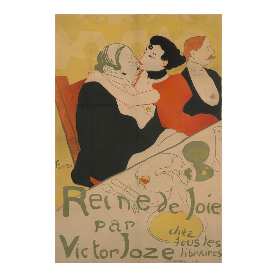 Lithograph in colors on two sheets of wove paper (as issued) linen-backed, published/printed by Victor Joze/Ancourt & Cie., Paris, the full sheet, framed