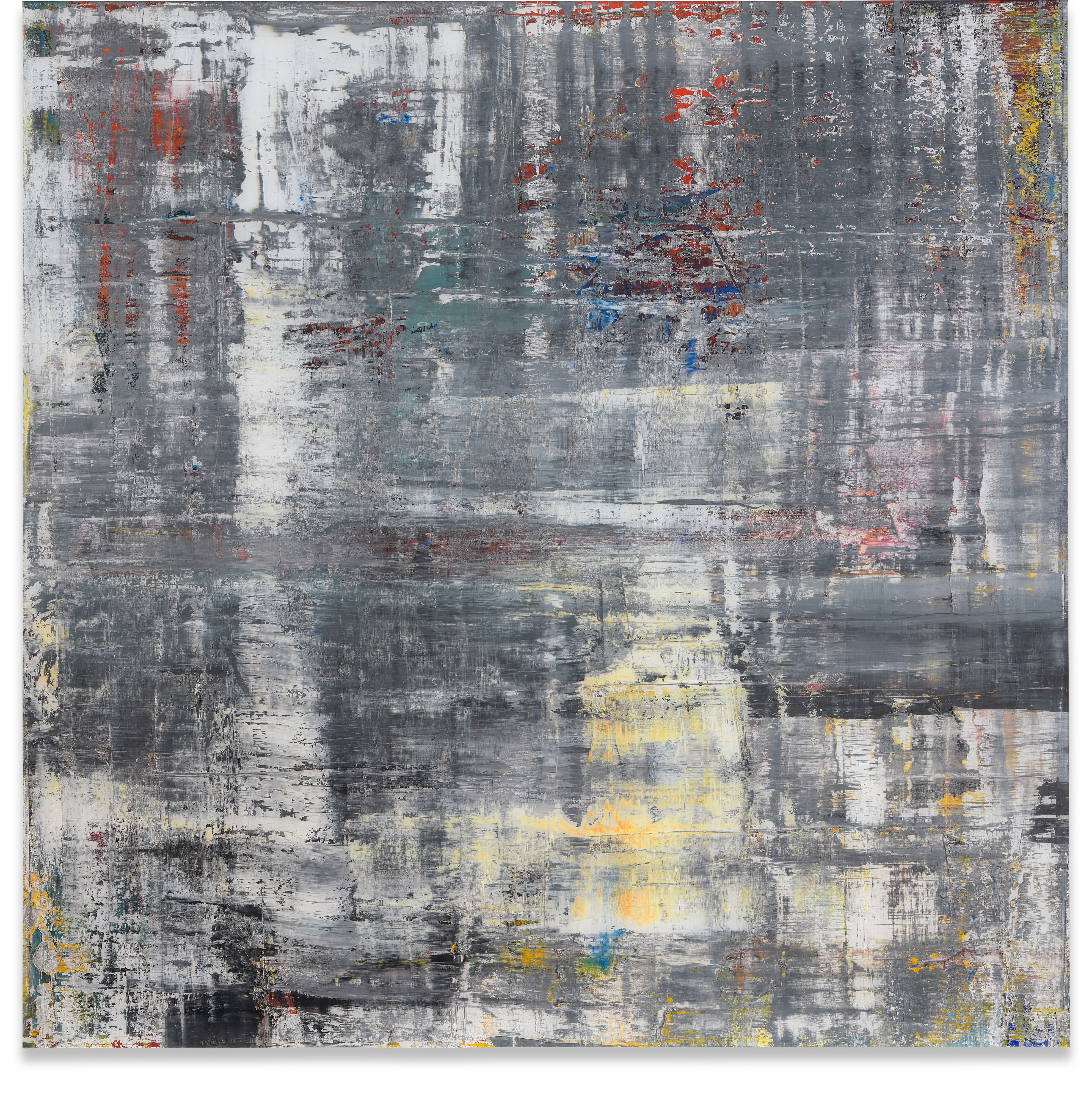 oil, alkyd, latex and nylon thread on linen mounted on panel