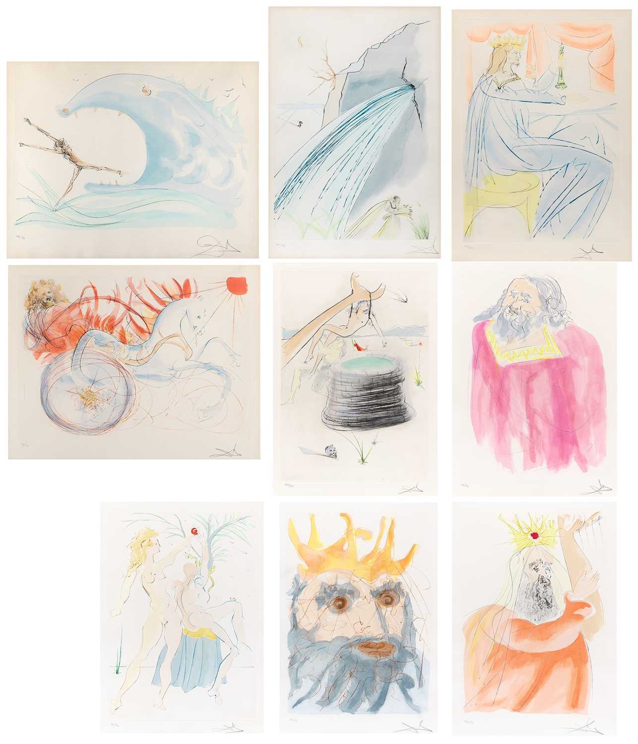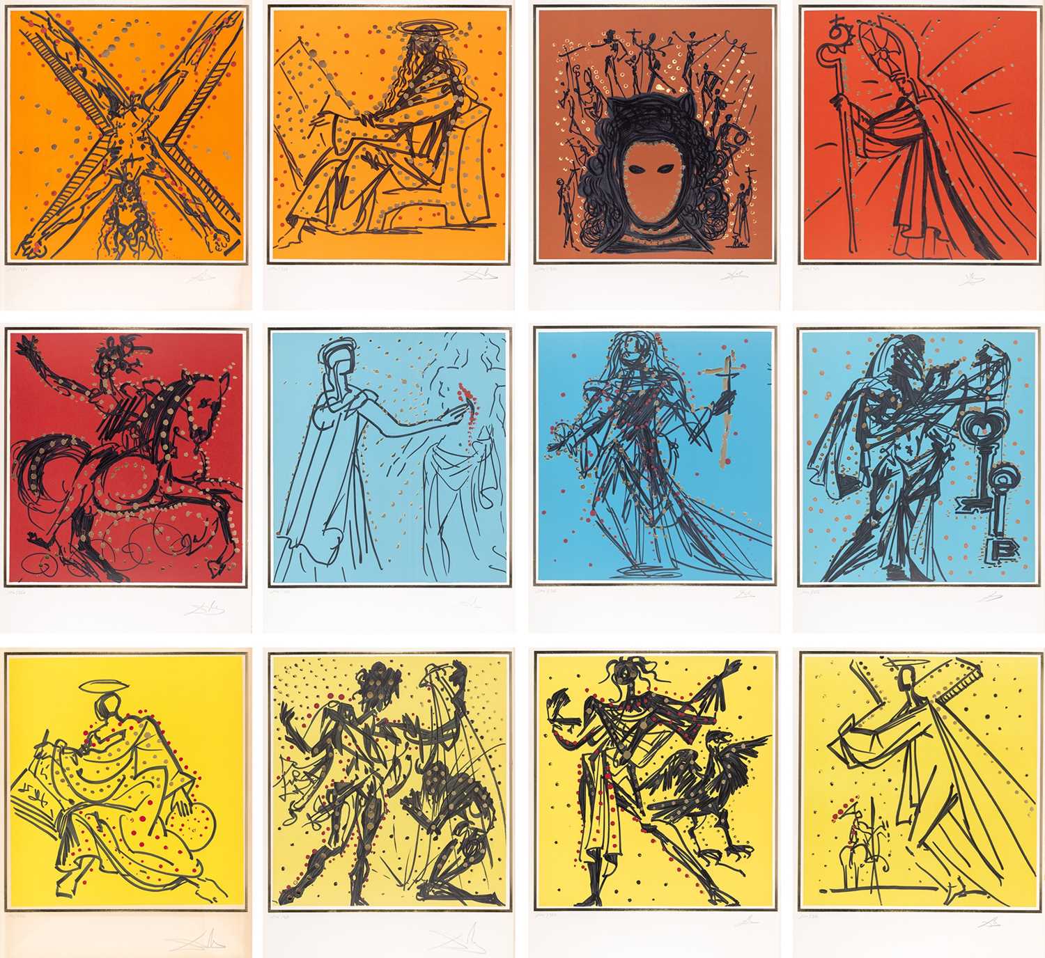 The complete set of six etching and aquatints in colors with embossing, on Rives BFK paper, with full margins, with justification page, all loose (as issued), all contained in the original black paper-covered heavy board portfolio with gold printed title and artist's name