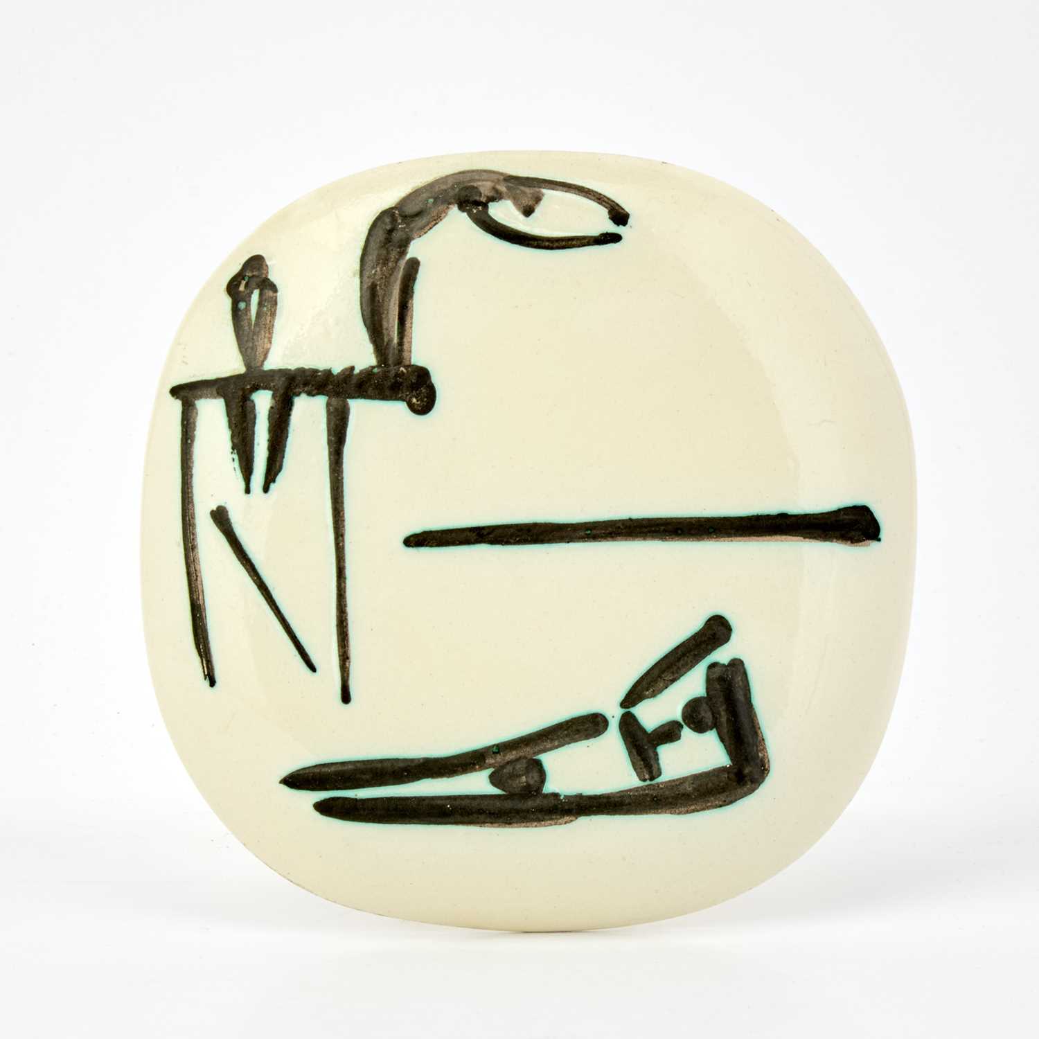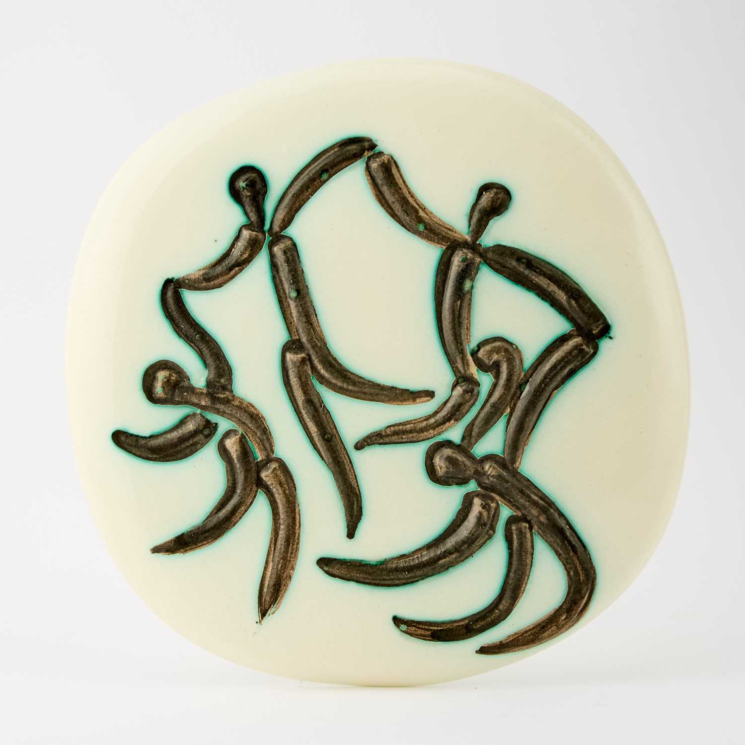 White earthenware clay, decoration in oxides, knife engraved on white enamel