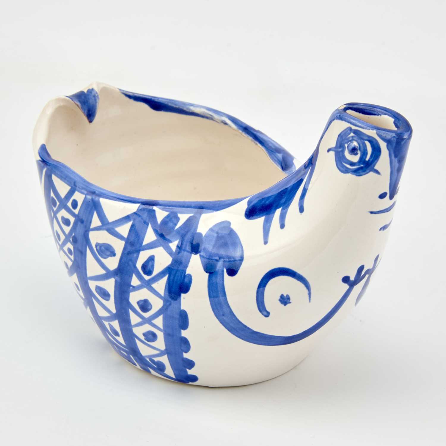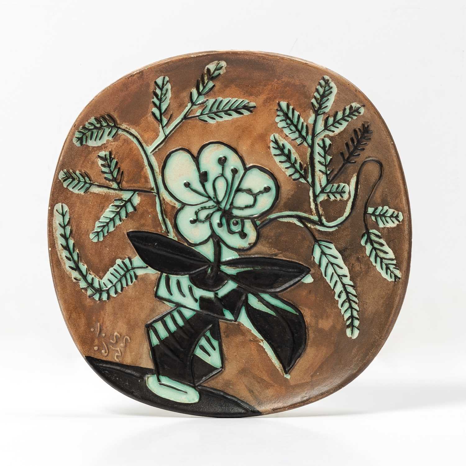 white earthenware clay, decoration in engobes under partial brushed glaze, beige patina