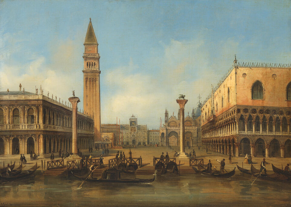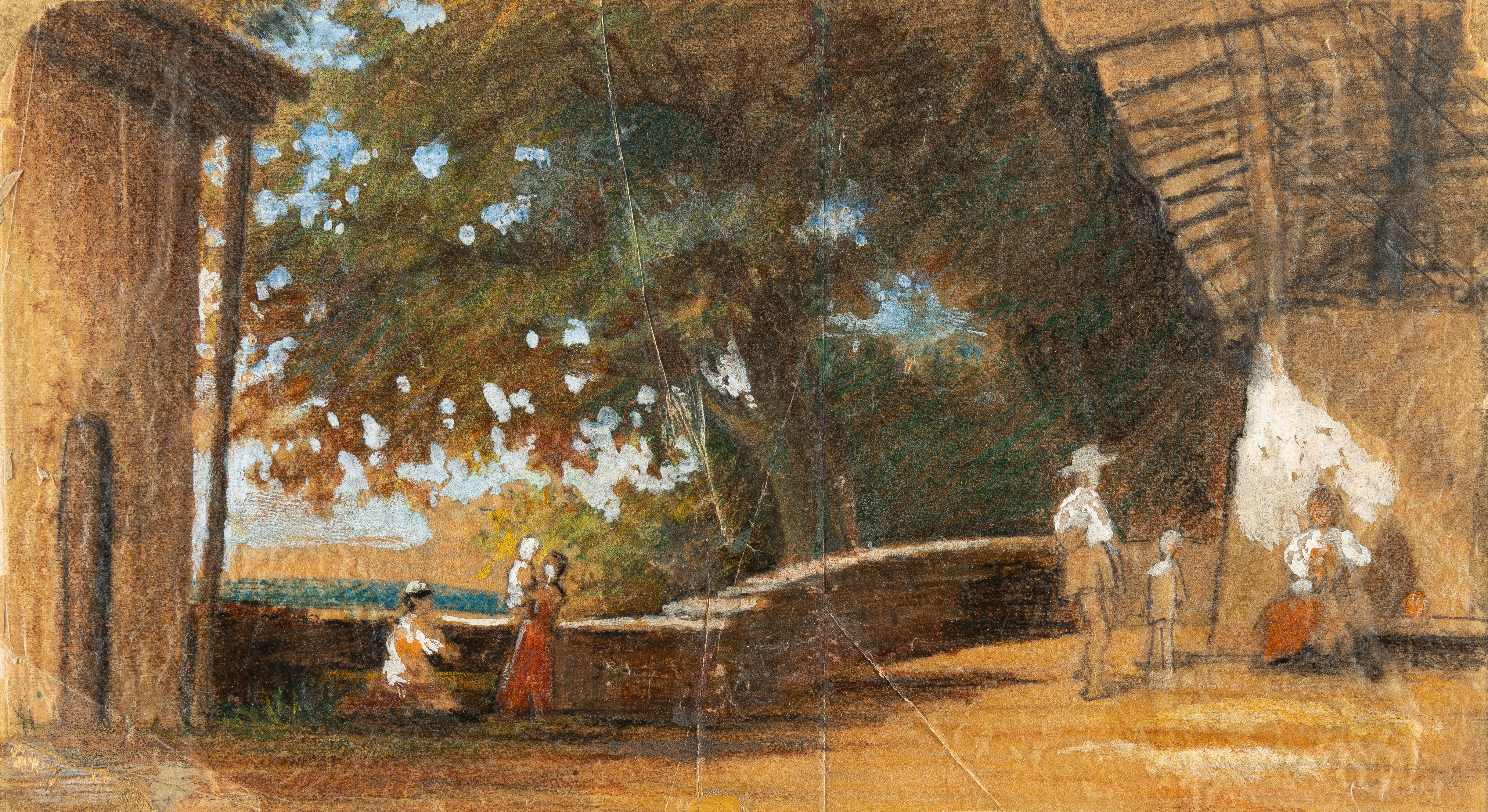 Italienische Landschaft mit Balustrade und Staffagefiguren