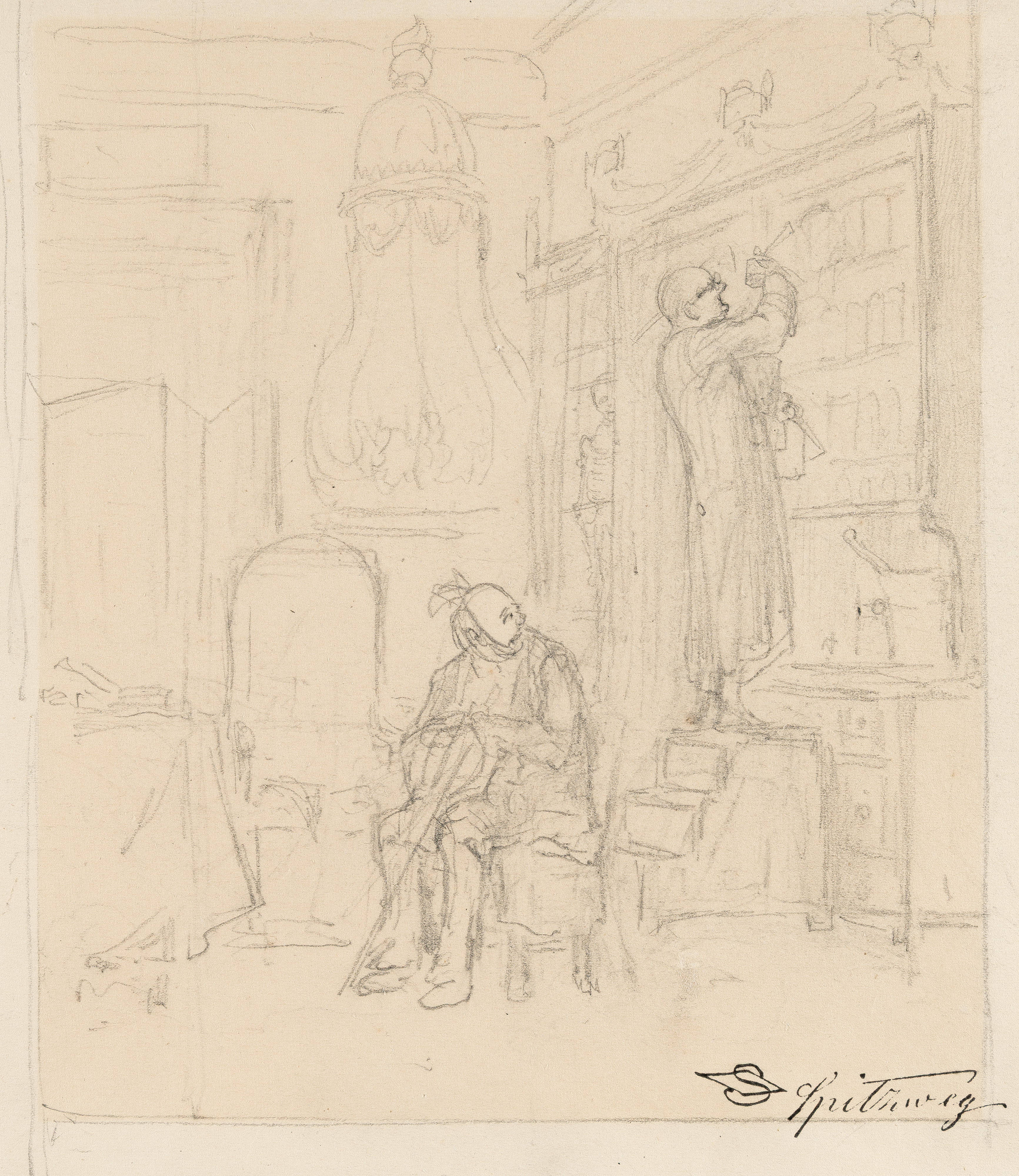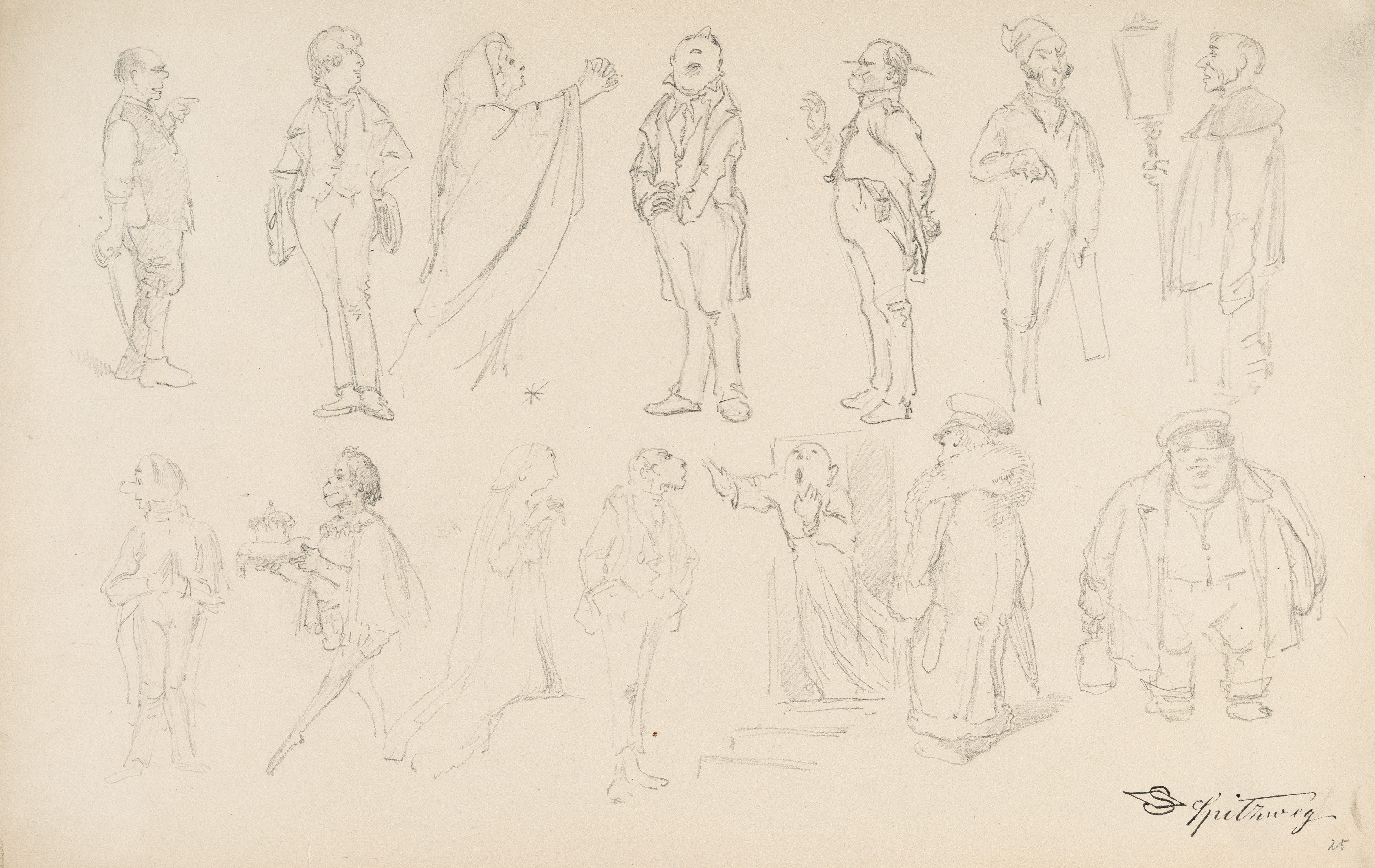 2 Bll.: Studienblatt mit vierzehn grotesken Figuren – Studienblatt mit Ko...