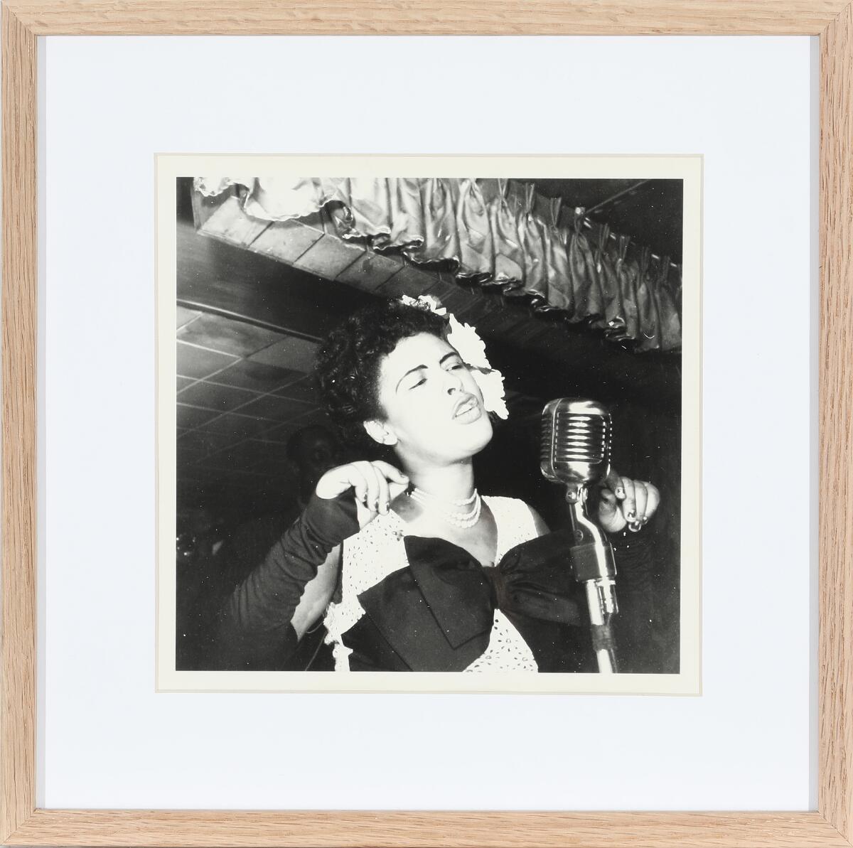 Original black-and-white press photograph of American jazz singer Billie Ho...