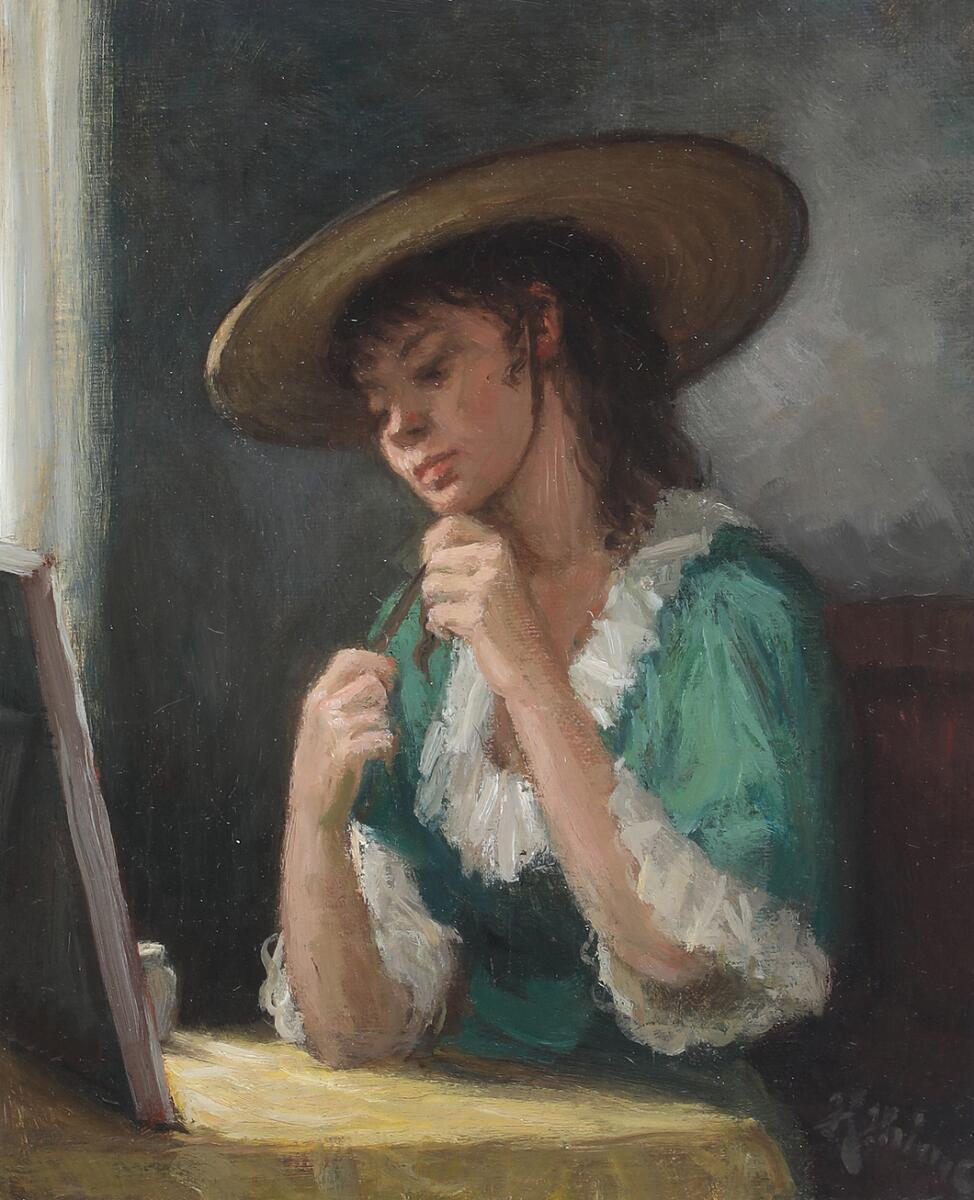 Signed b/w silver-gelatin portrait photograph of American-Danish painter an...