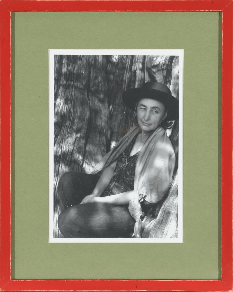 Black-and-white portrait photograph of American artist Georgia O'Keeffe (18...