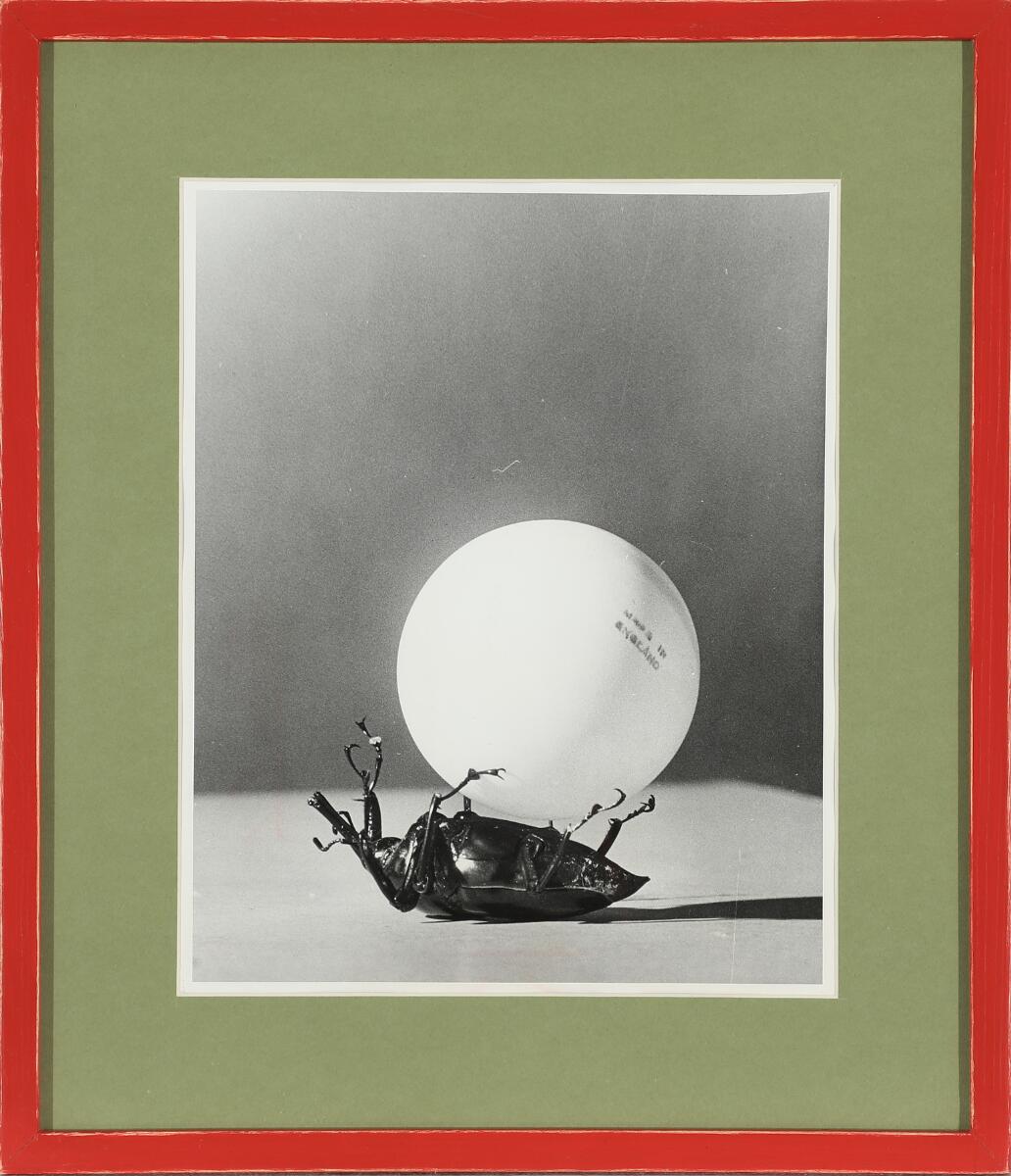 Original black-and-white press photograph of a beetle lying on its back spi...