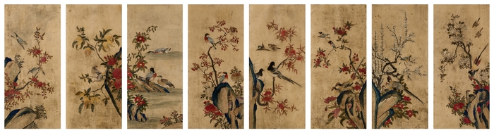 The set of four screenprints in colors with flocking in pink, on wove paper, with full margins