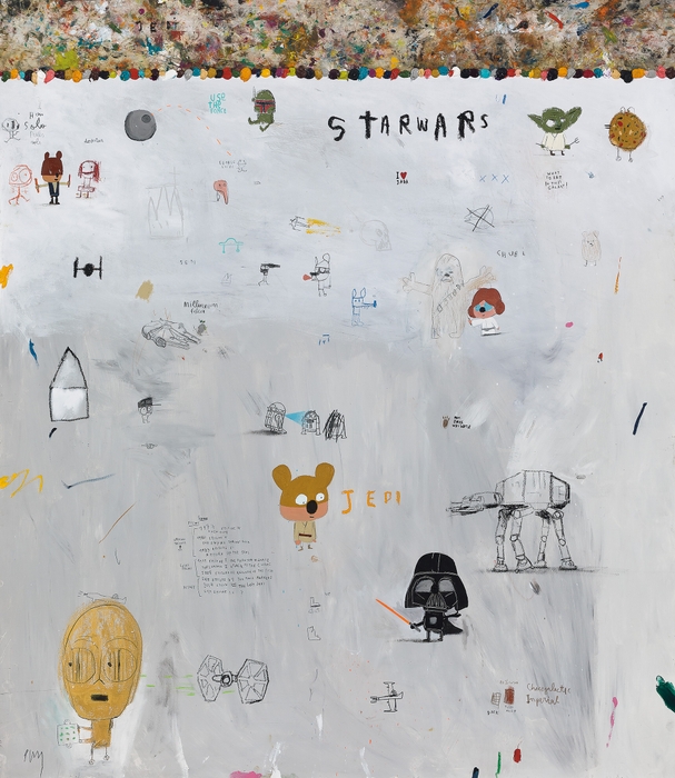 plastic flies (217 parts) installed on wall by the artist pouncing
