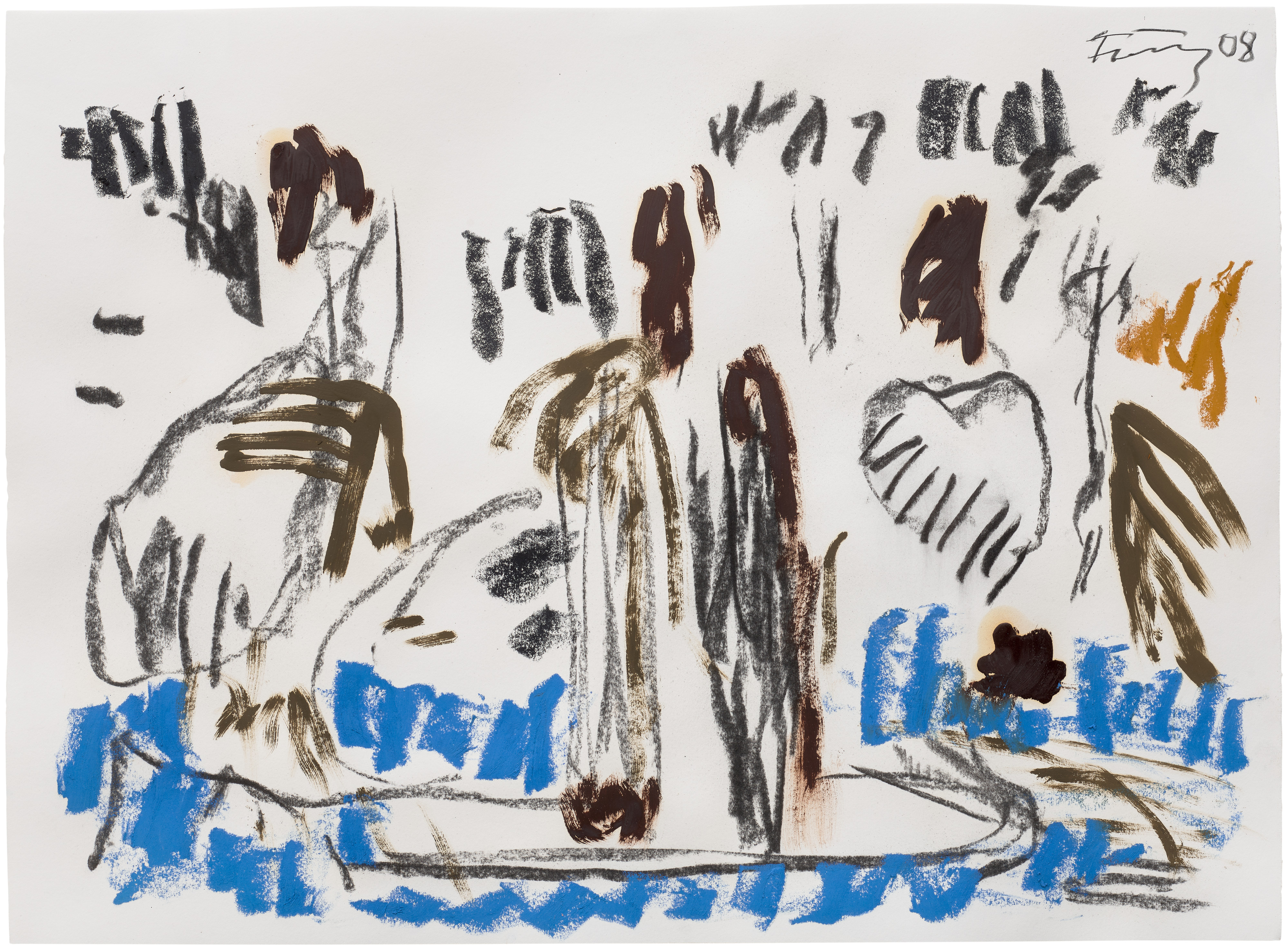 painted sunflowers cast in aluminium and fiberglass, oil, lacquer, emulsion, straw and bitumen on canvas