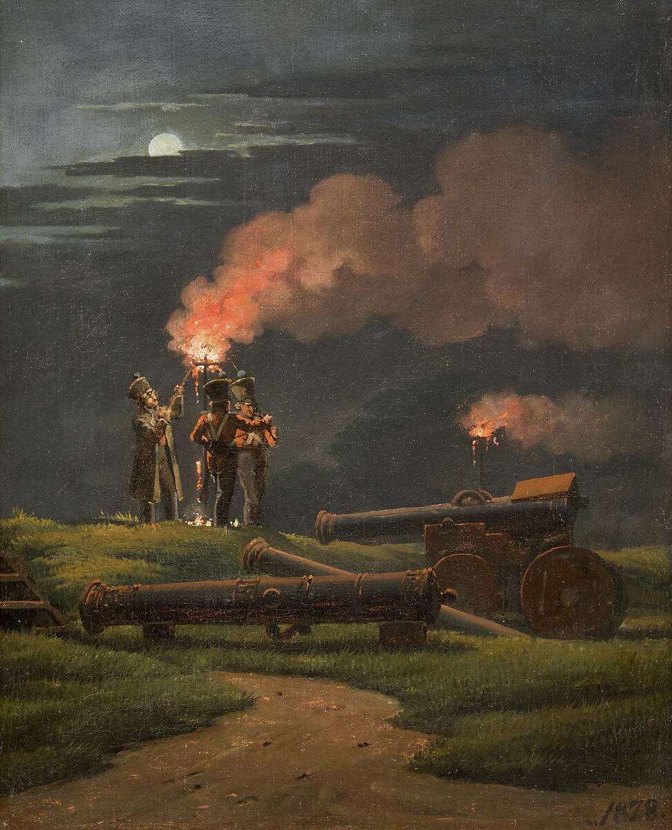 “Artillerister holder vagt ved begfakler i anledning af Frederik VIIs og ...