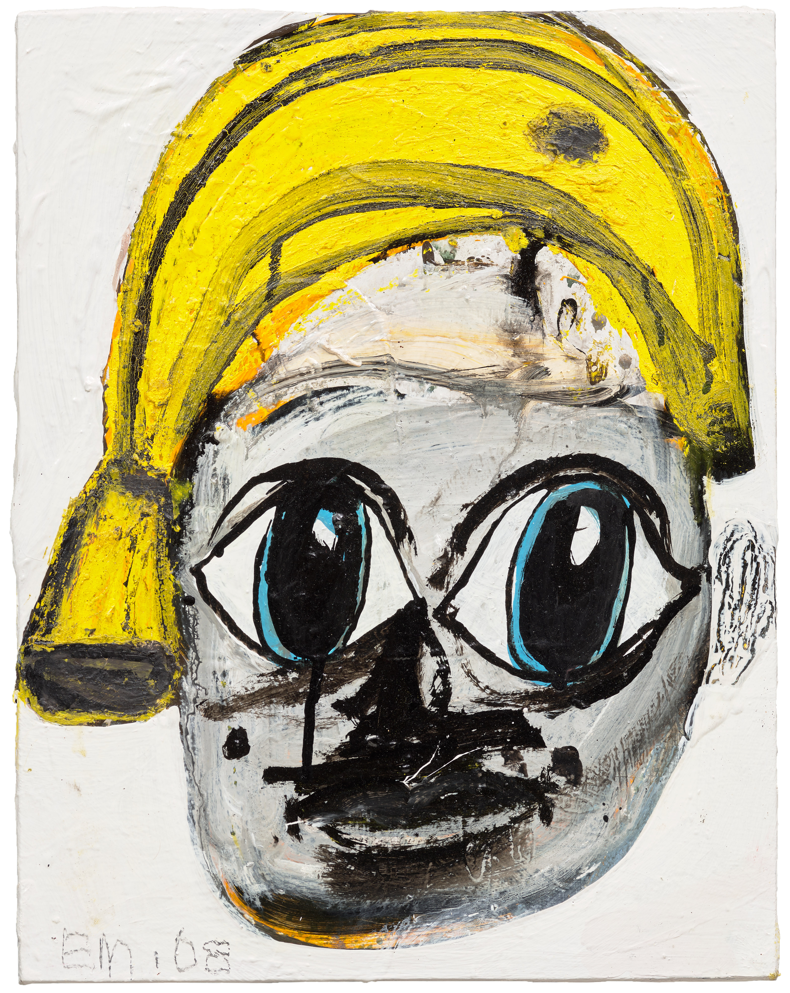 Unique pencil, ballpoint pen, acrylic paint and paper collage with industrial varnish, on Fredrix canvas panel