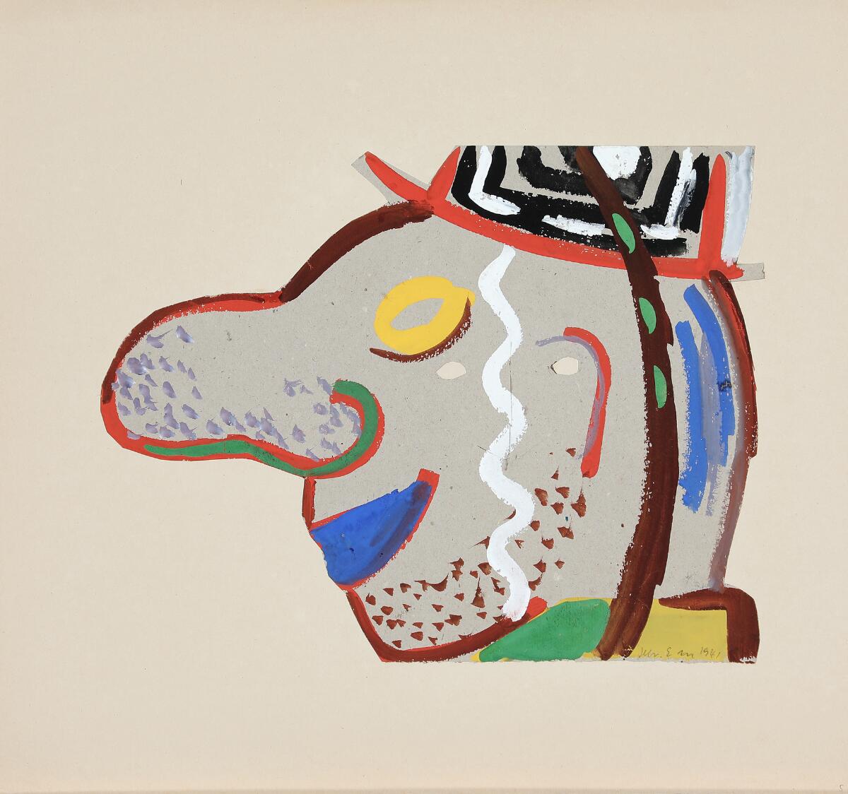 Gouache on gray paper mounted on paper