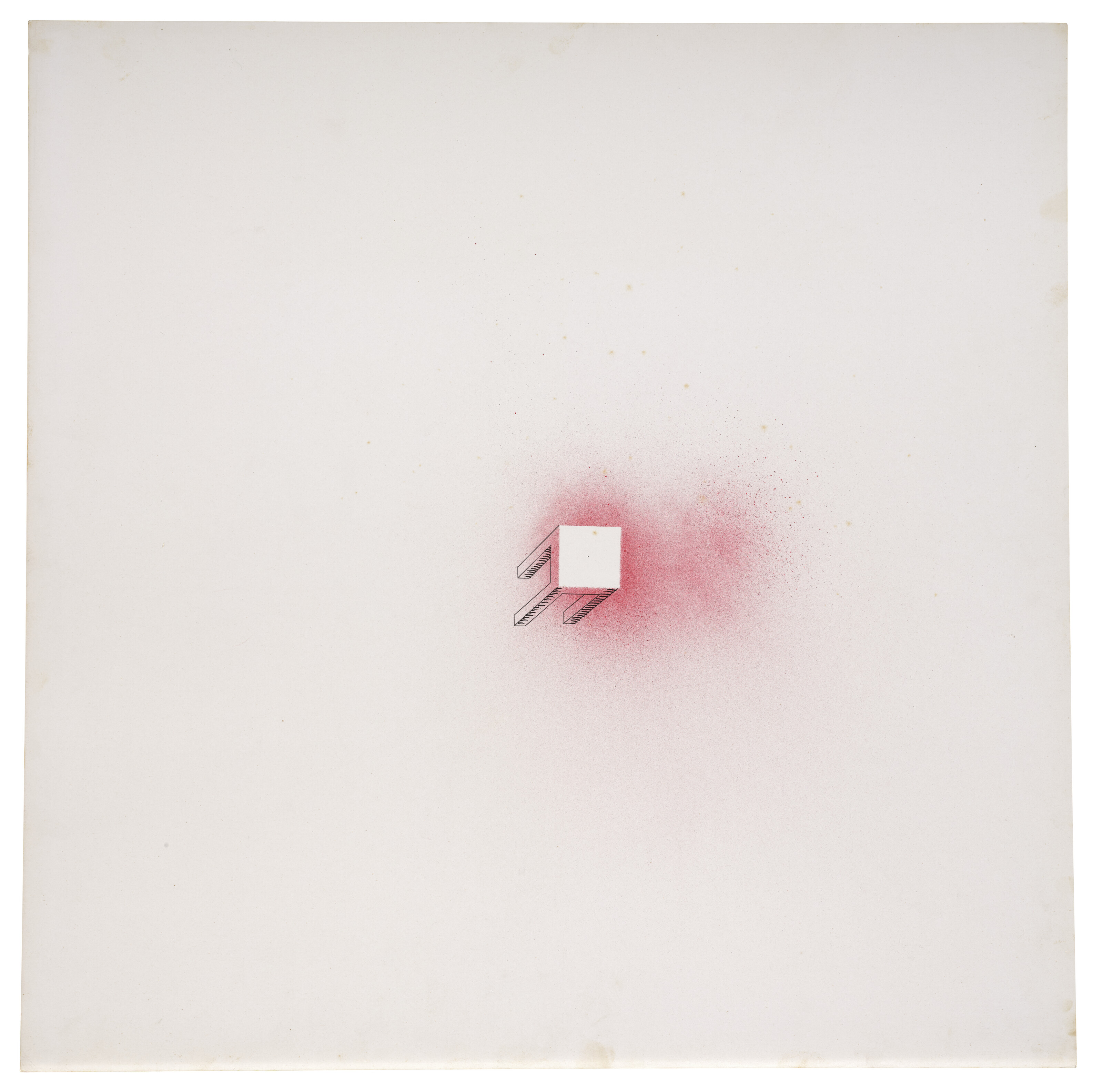 Wire mesh over aluminium support with glass bottle, metal clips and neon light