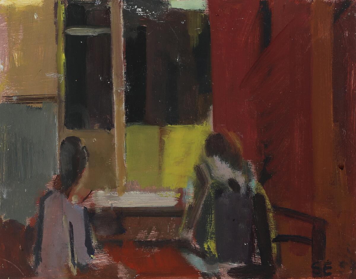 Interior with two figures at a table