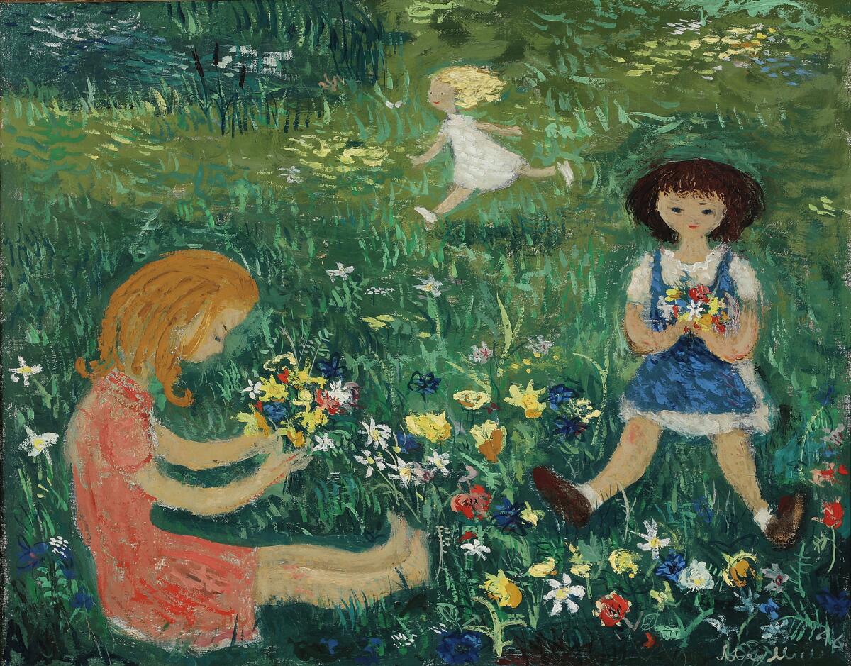 Scenery with three girls in a field