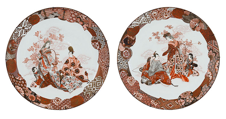 A Pair of Massive and Well-Painted Japanese Kutani Chargers, Meiji Period (...