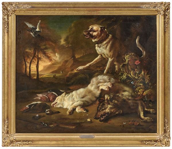 Natura morta con cane e selvaggina