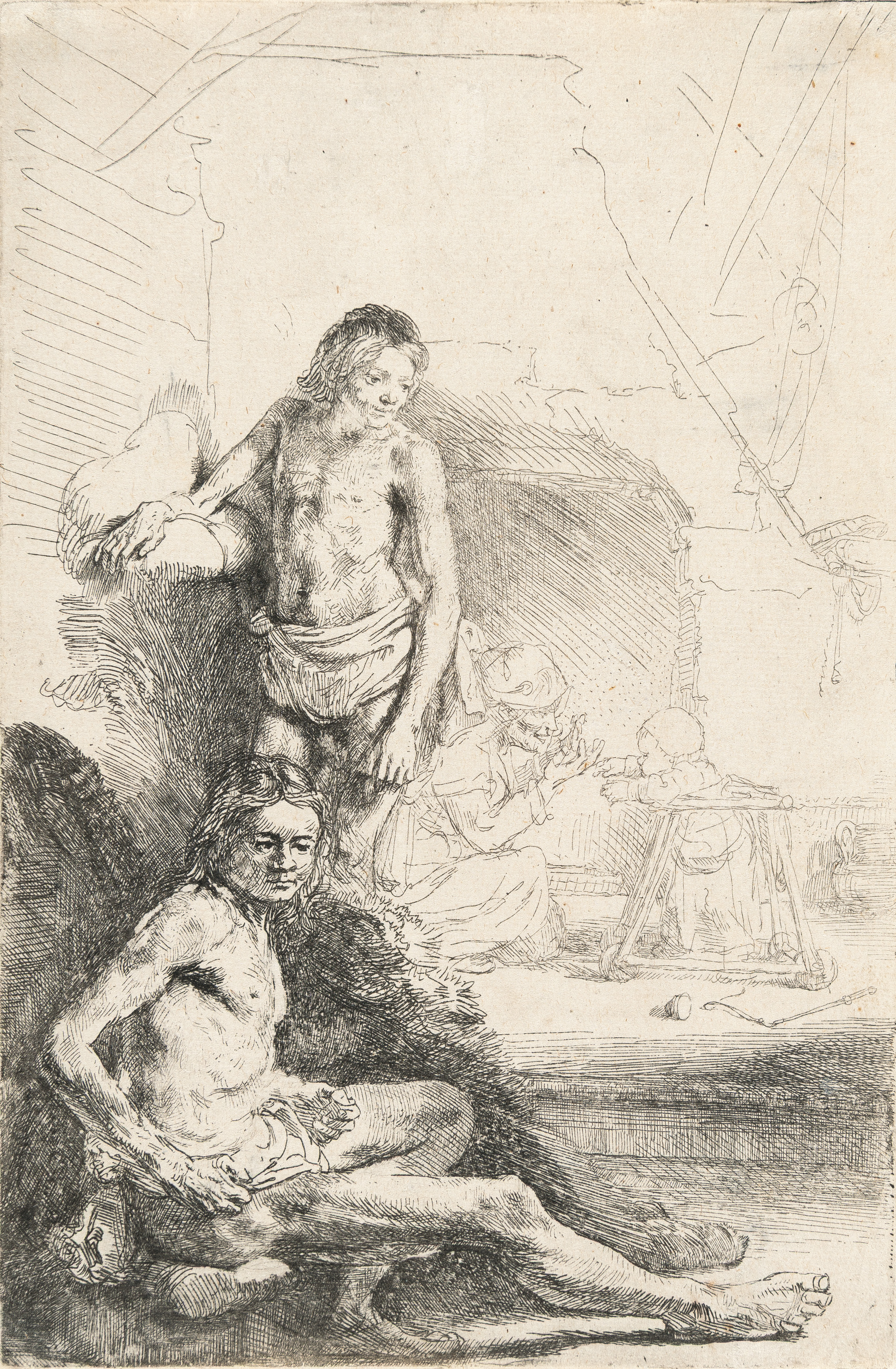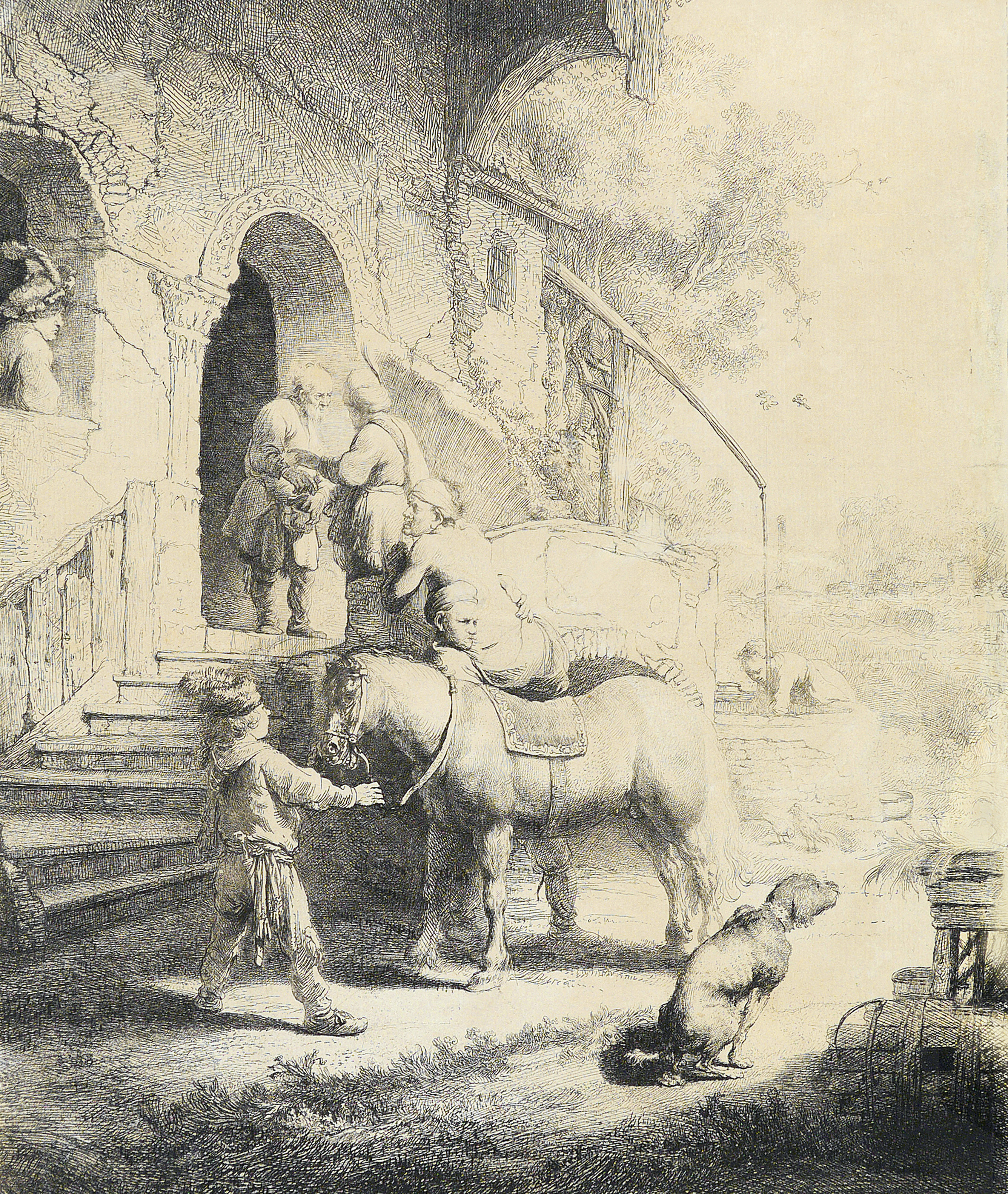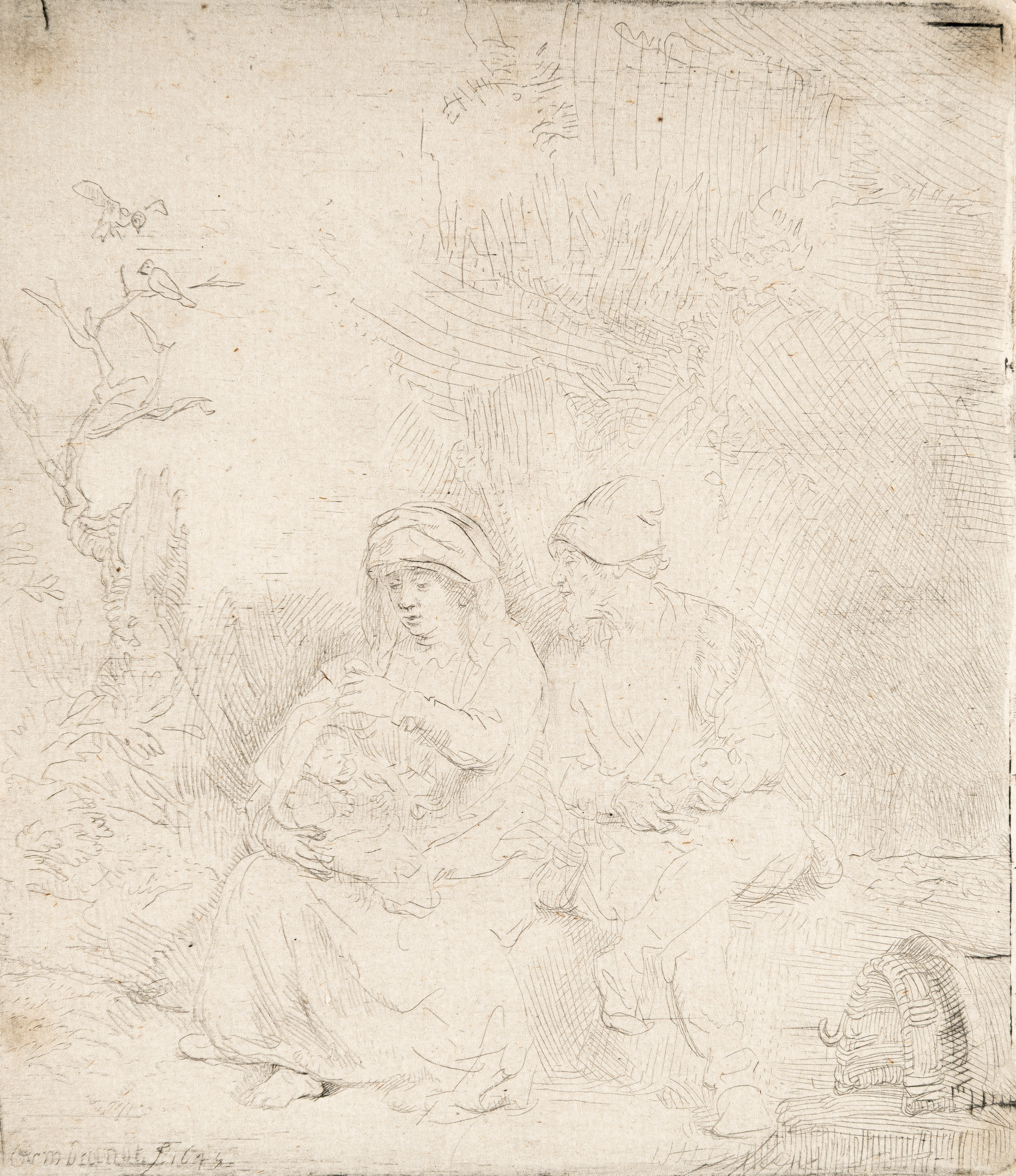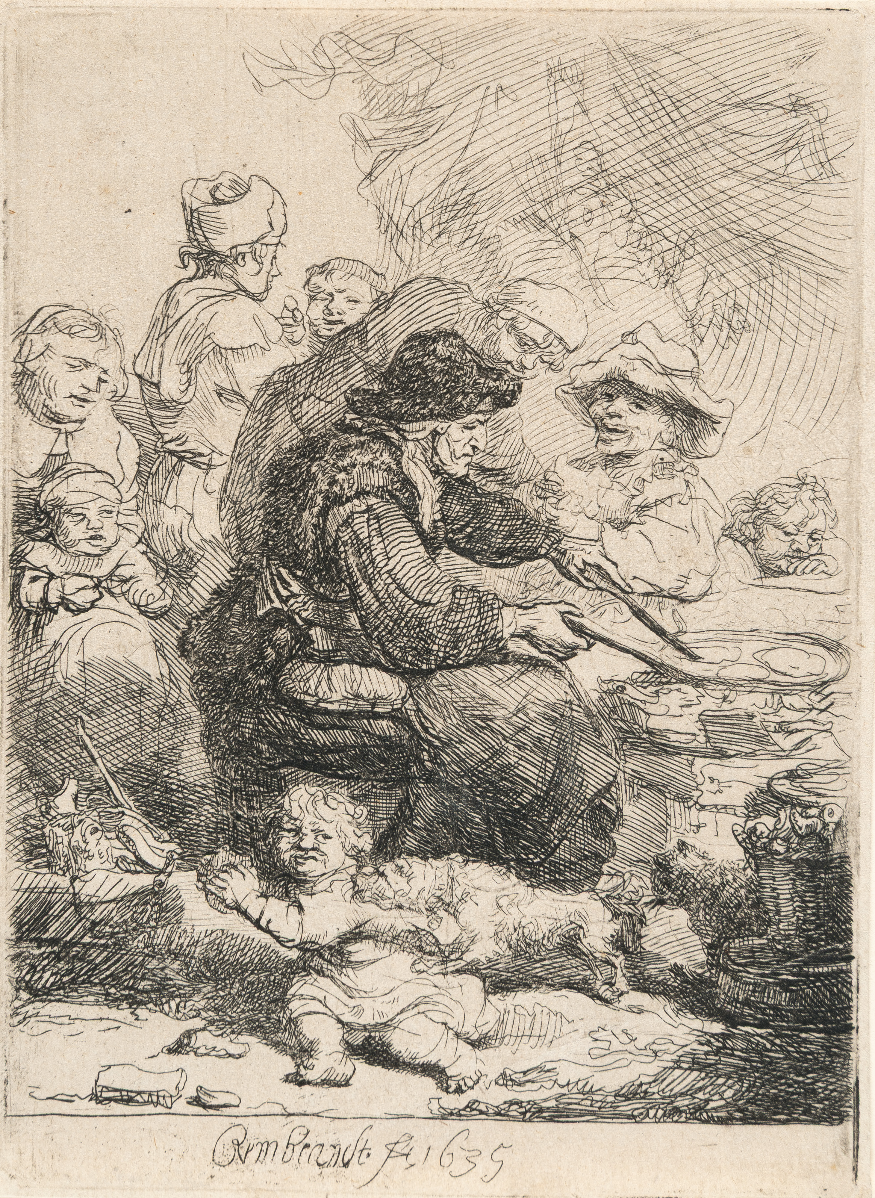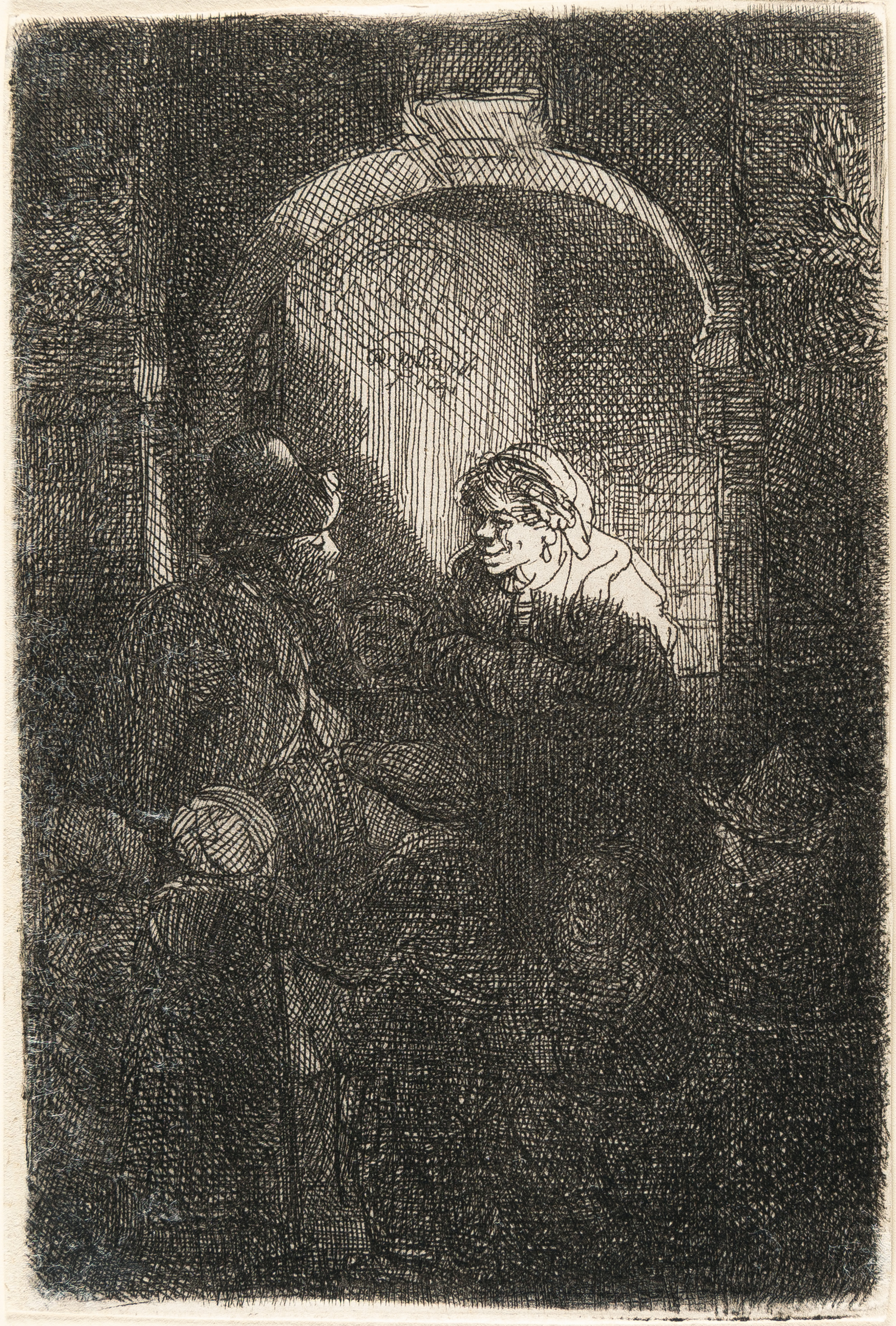 Etching and touches of drypoint on laid paper