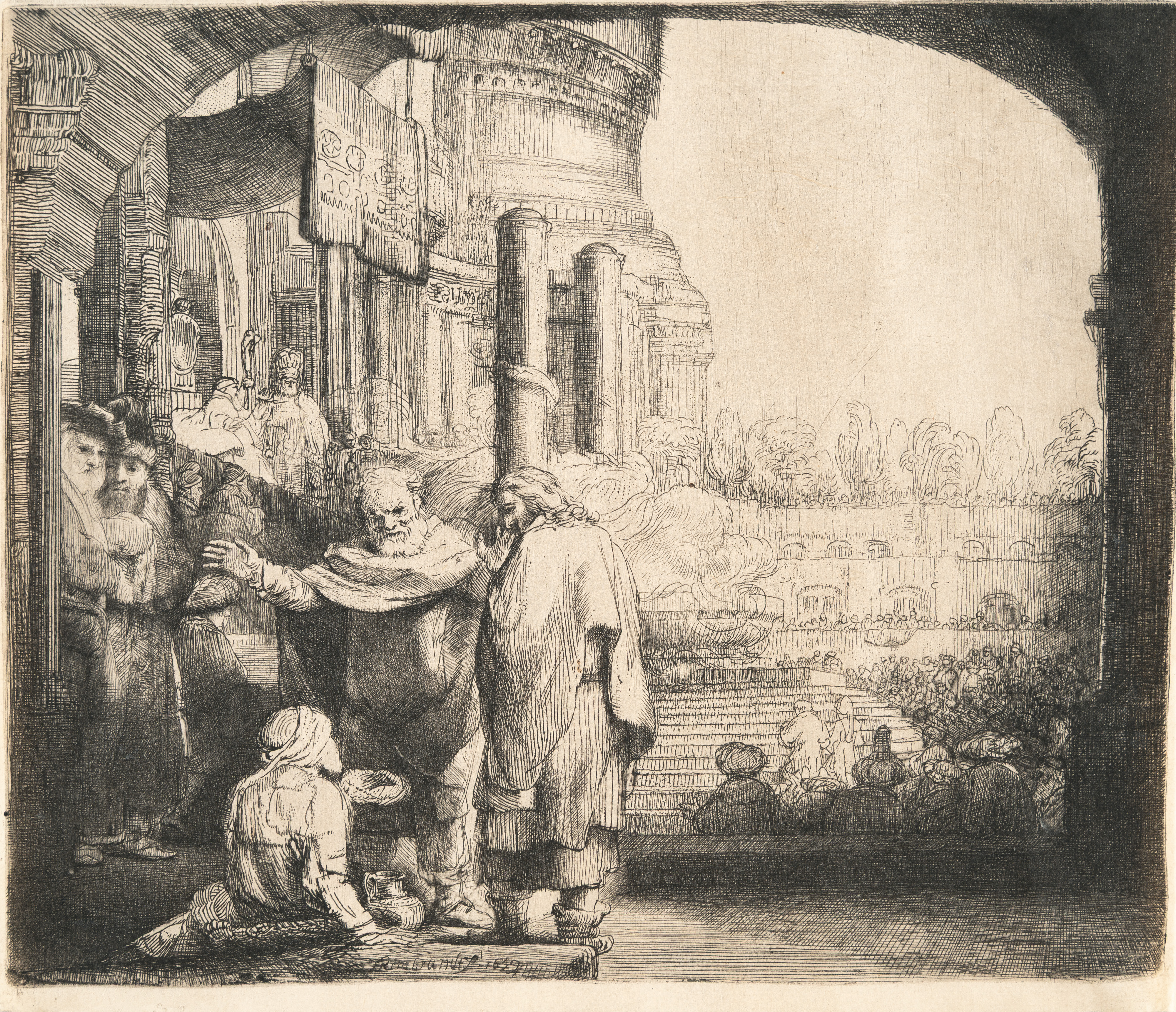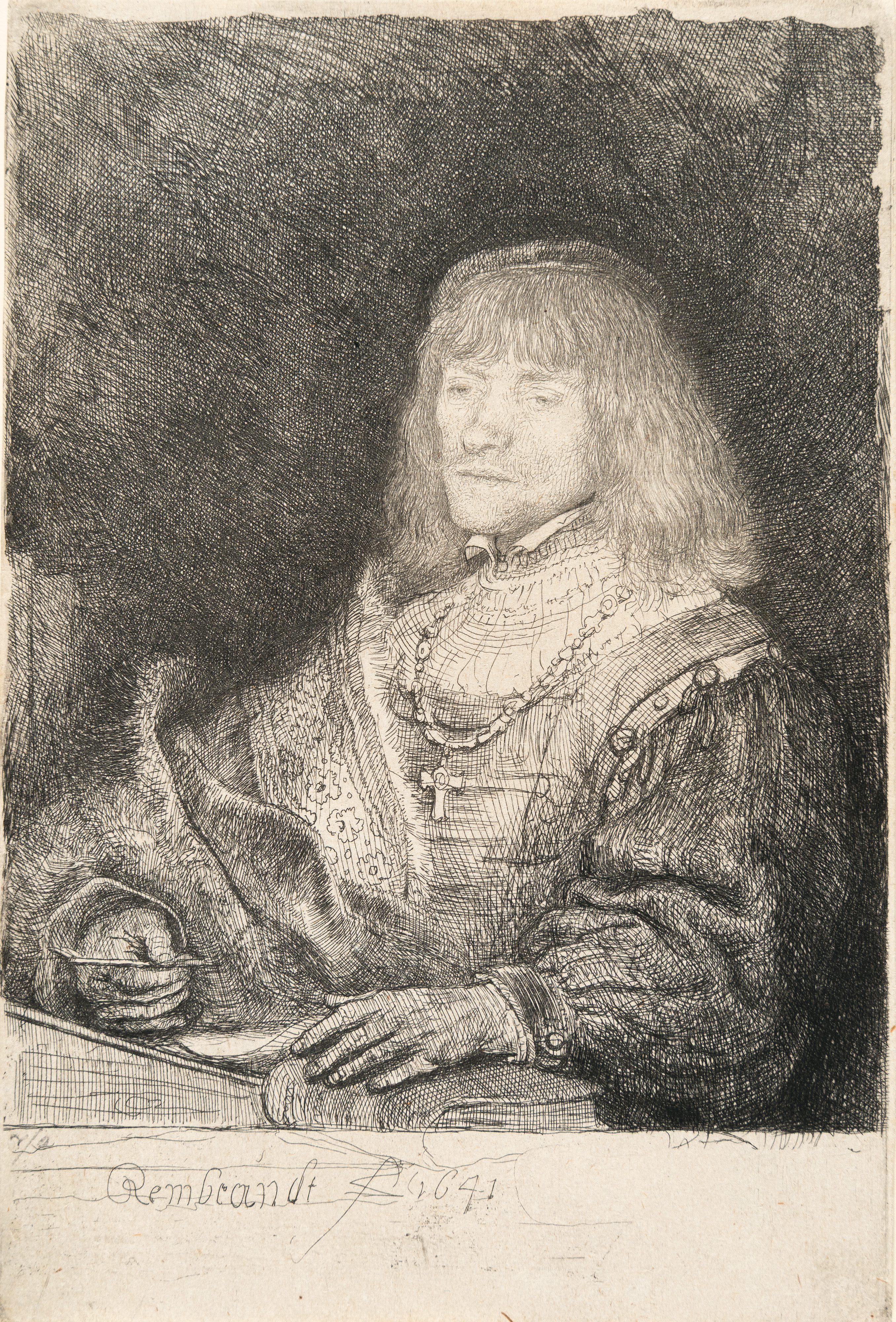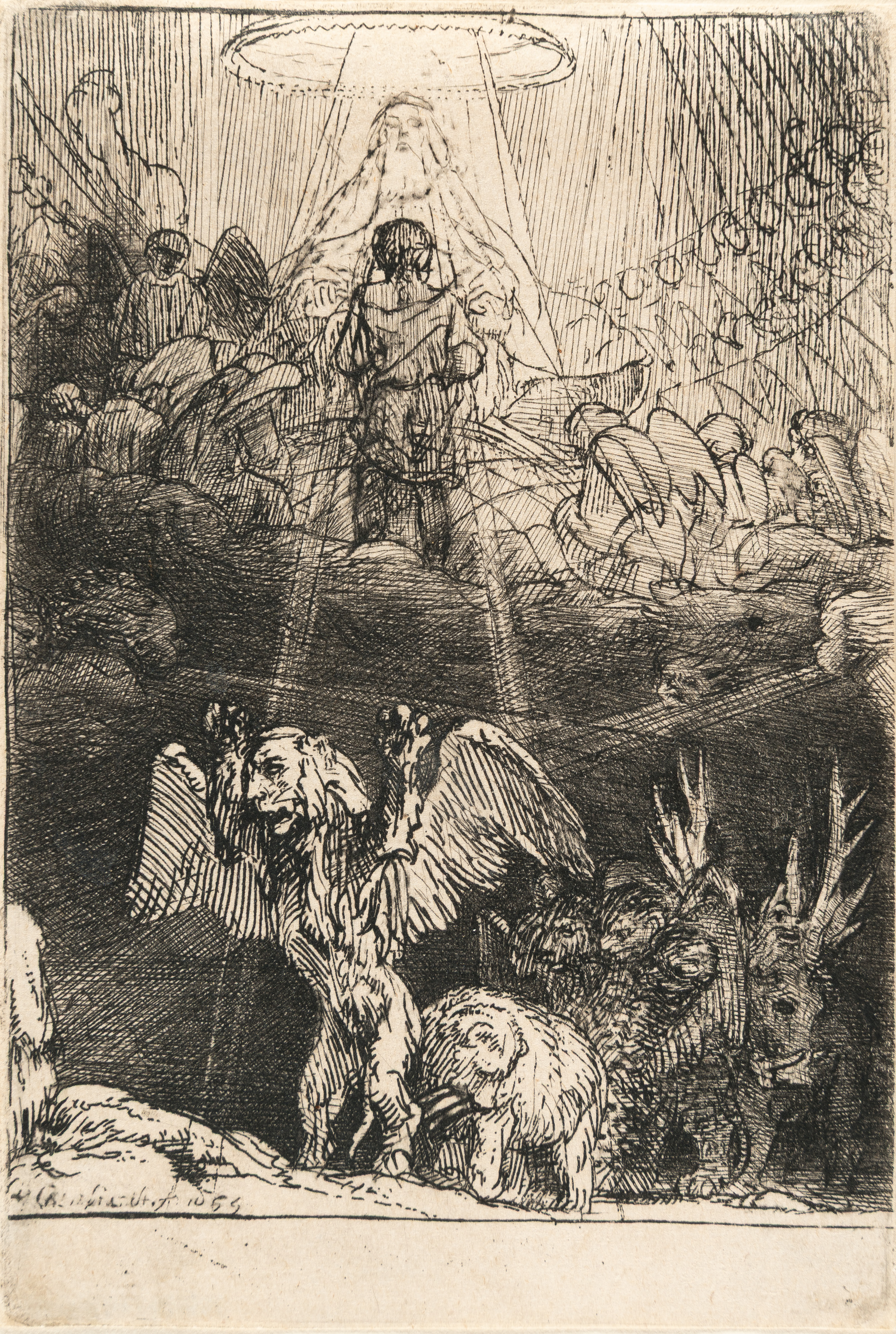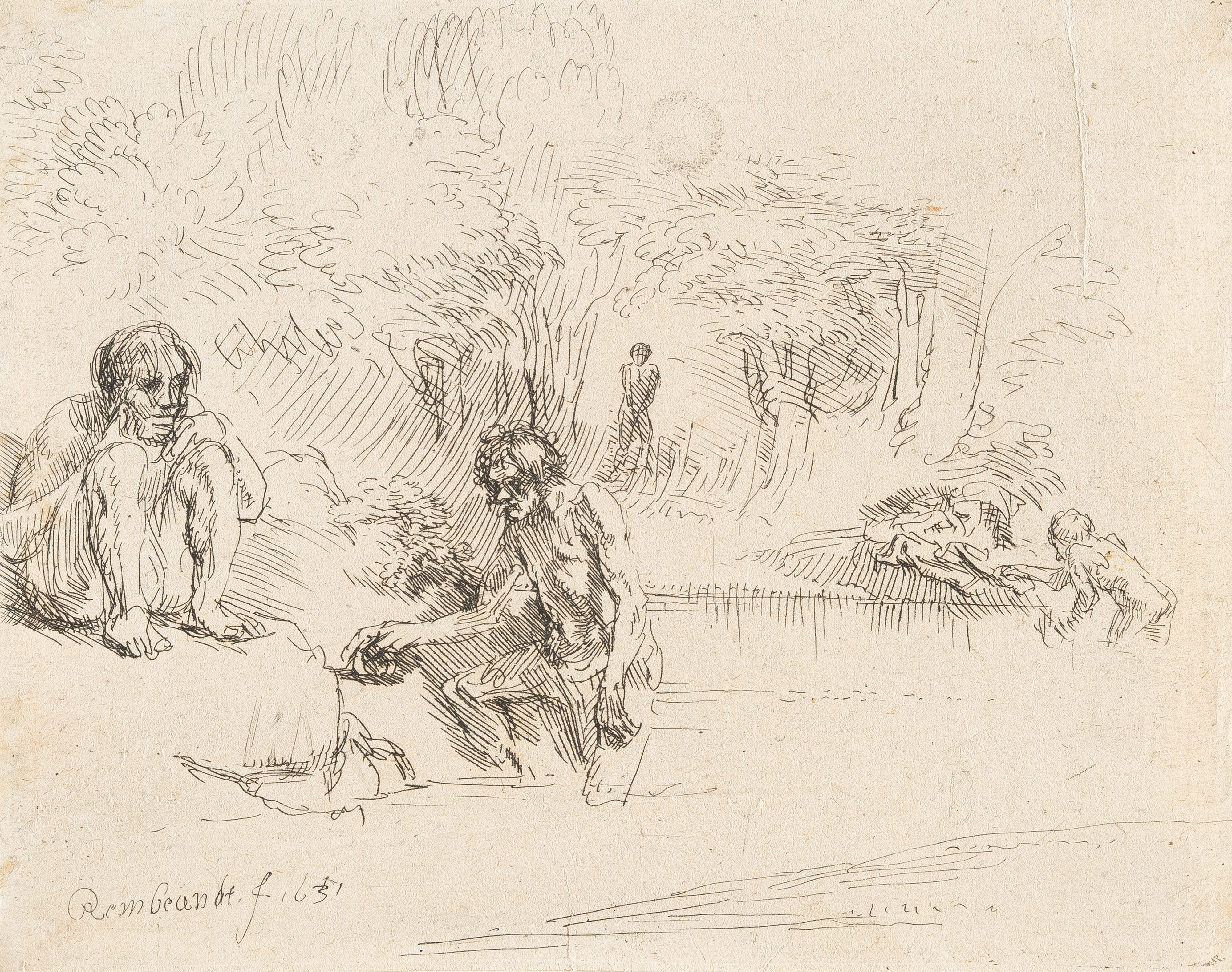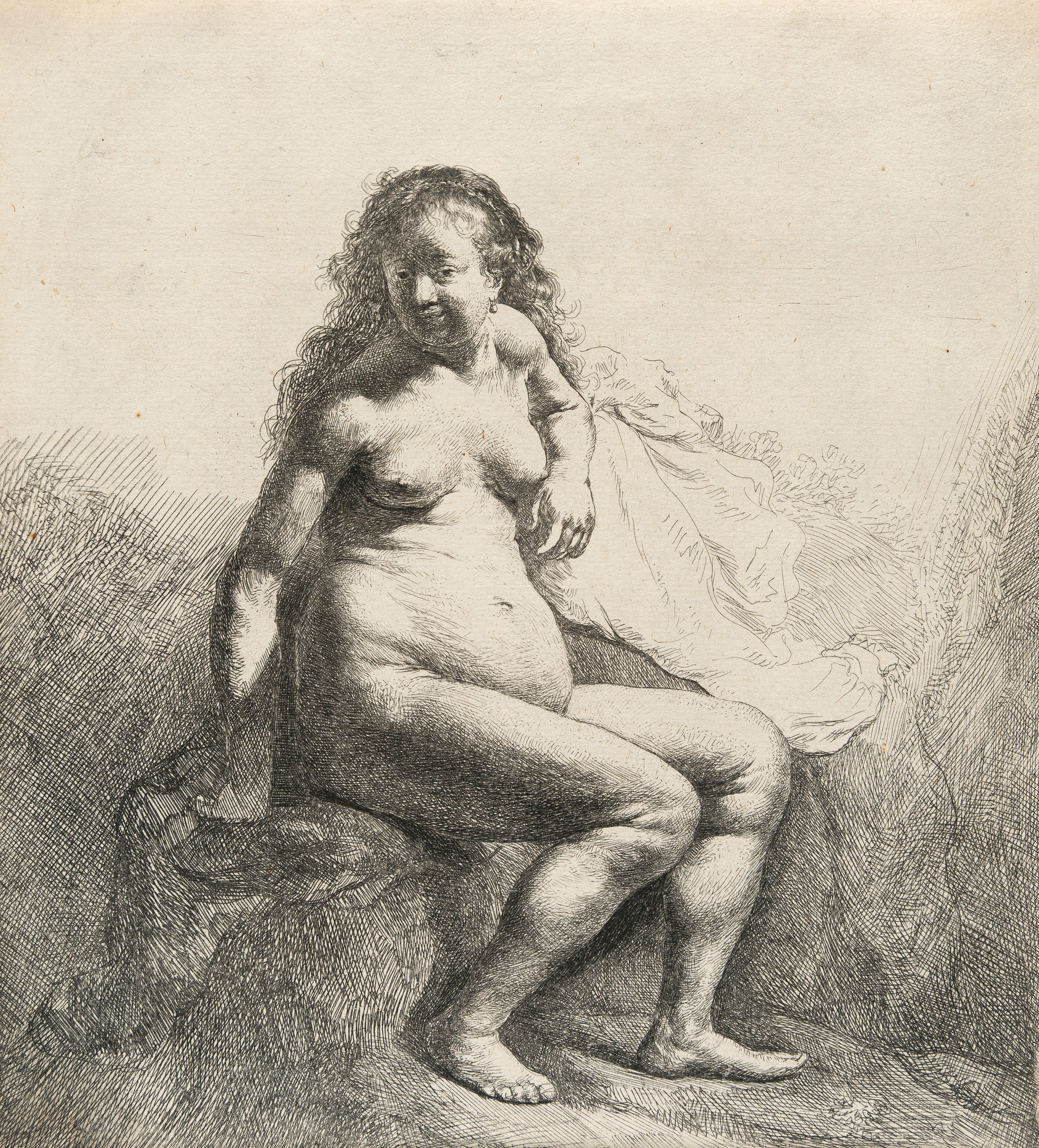 Etching and touches of drypoint on laid paper
