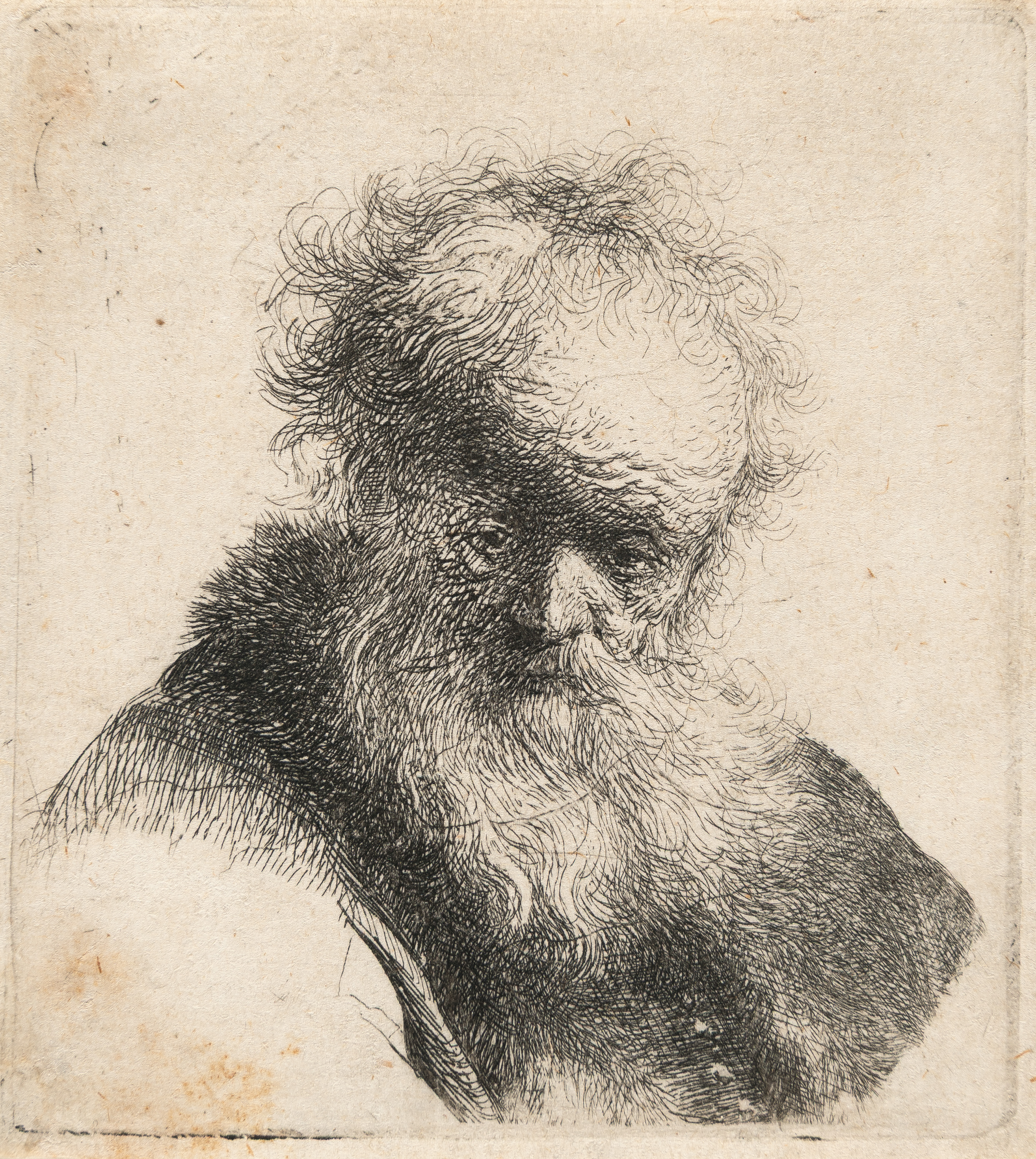 Bust of an Old Man with a Fur Cap and Flowing Beard, nearly Full Face