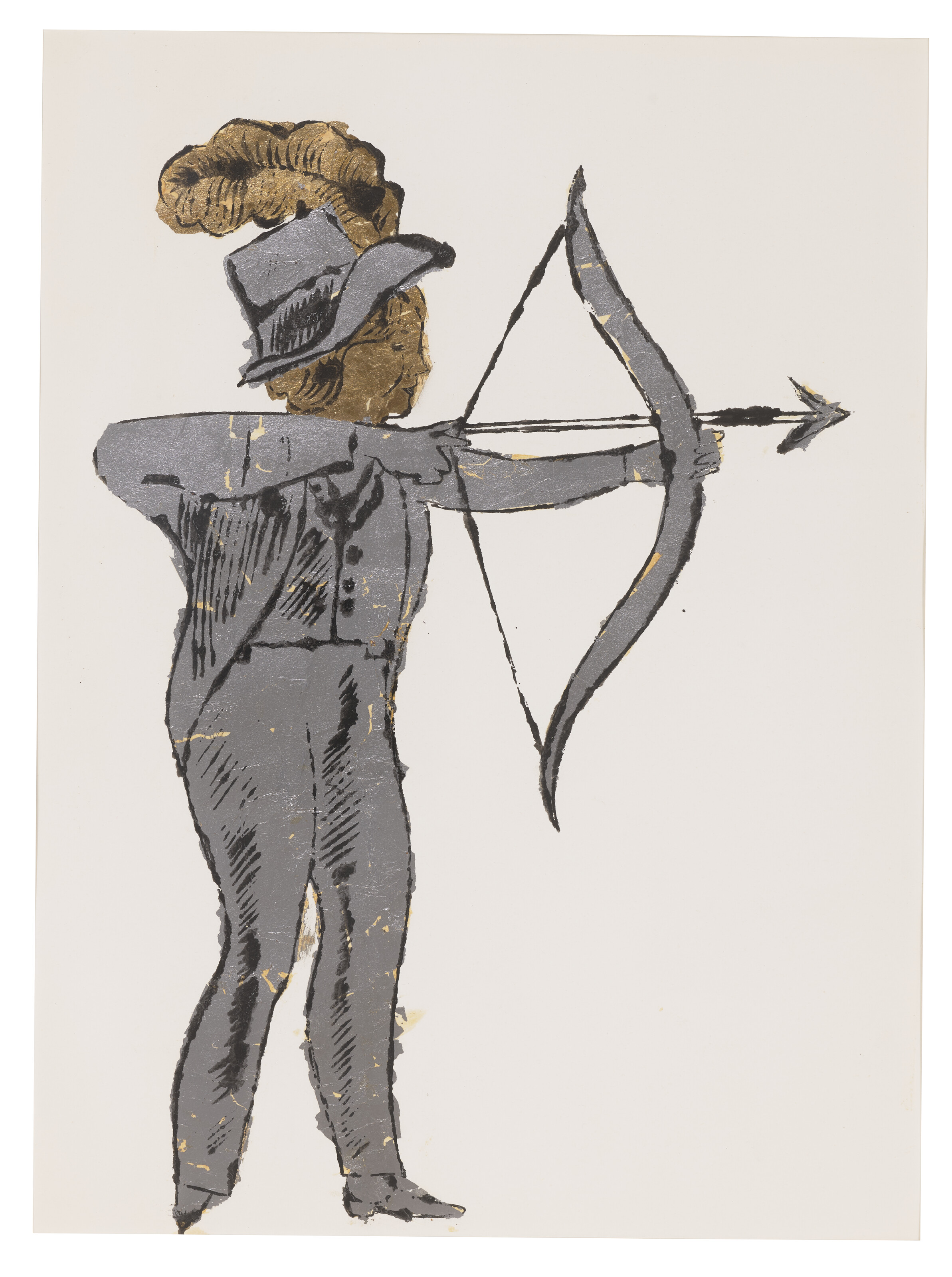 ink, gold leaf and silver leaf on paper