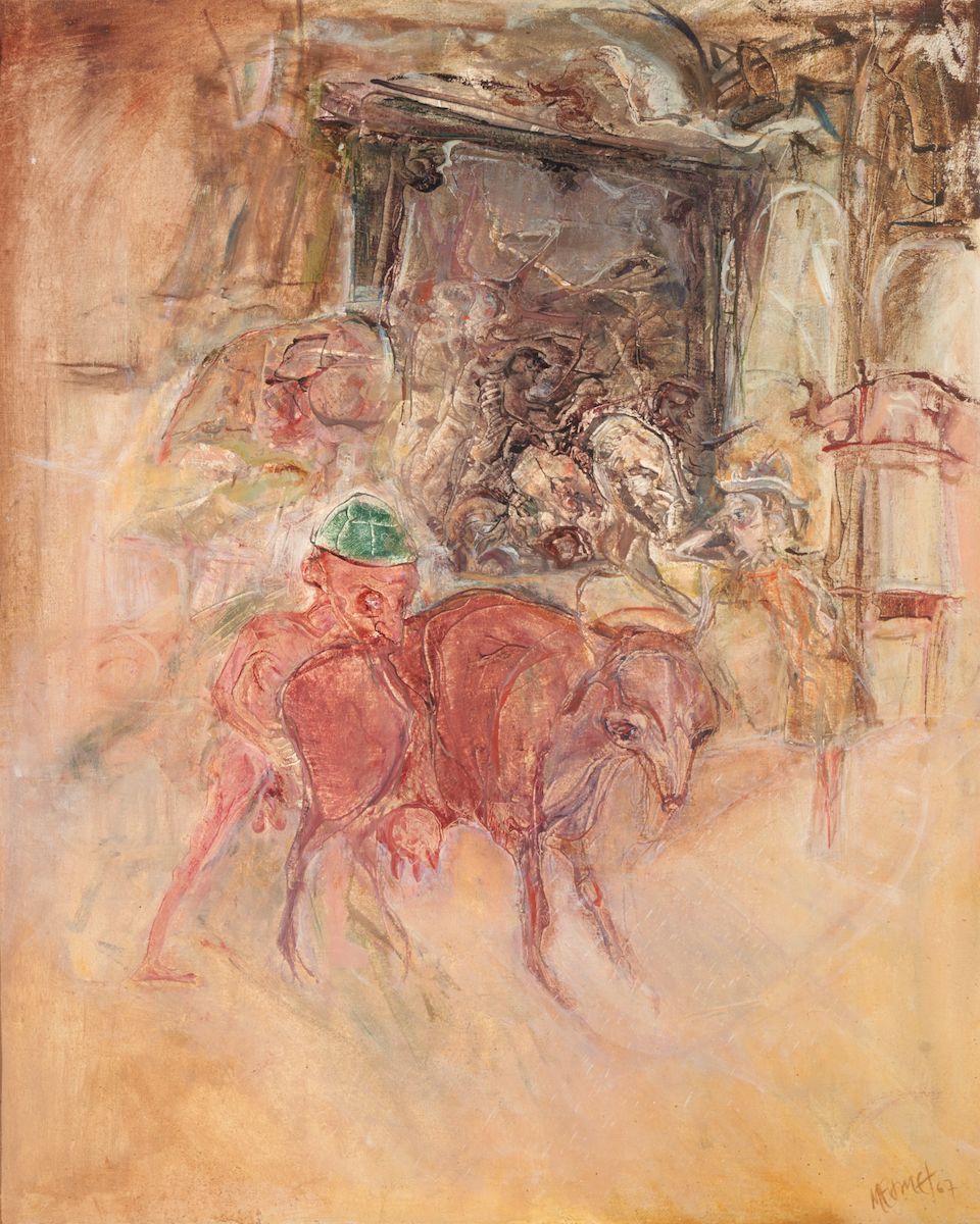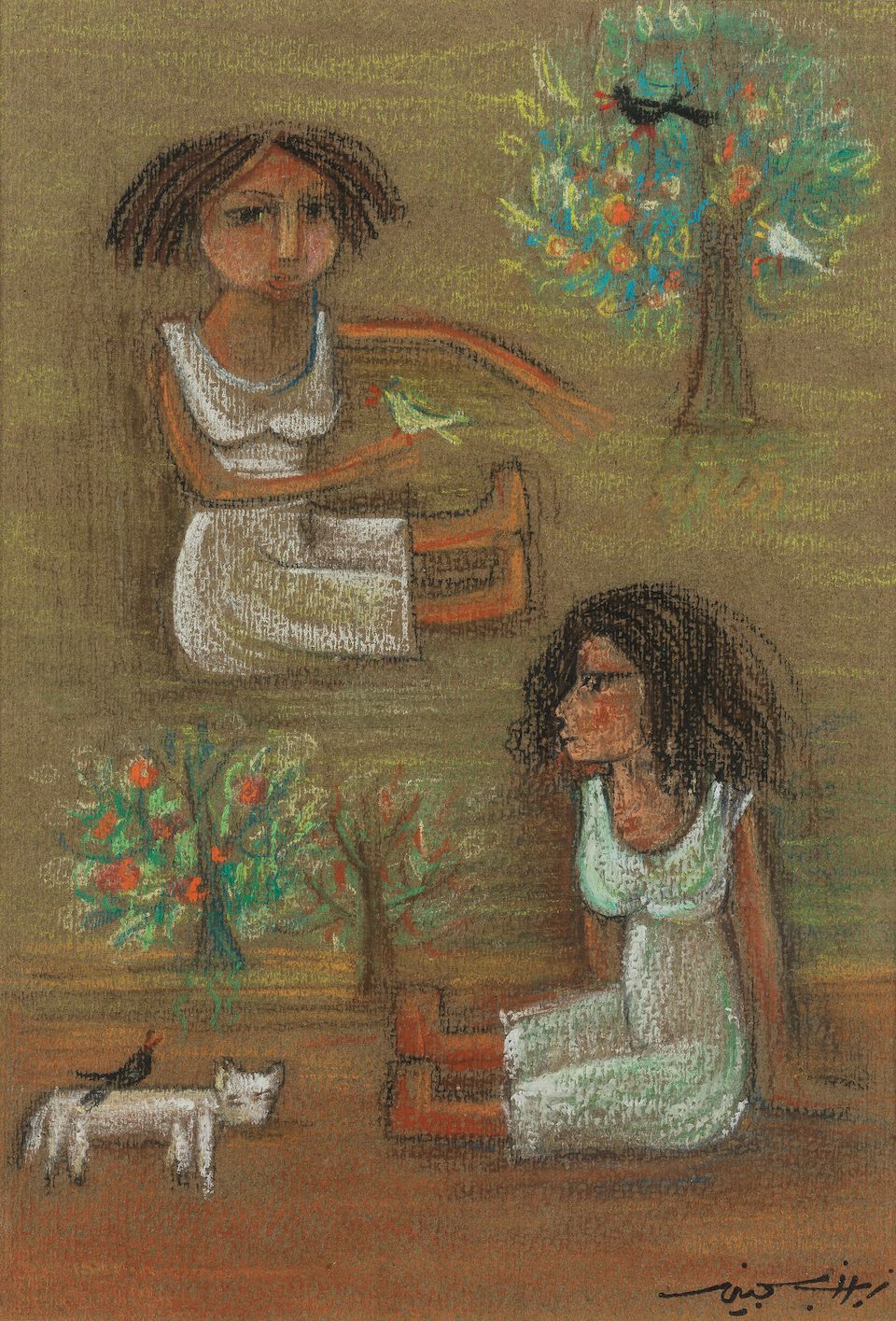 Painted in Kakiemon style with birds and flowering branches, crossed swords marks, a Meissen saucer, circa 1740, painted in purple with a scene of merchants by a quayside, within a baroque cartouche, crossed swords mark, a Meissen cup, circa 1770, painted with a couple on the shore observing a fleet, with blue ribbon border, crossed swords mark, a Mennency covered pot, circa 1760, the panelled body painted with floral sprays, incised DV mark, together with a Sevres style trembleuse cabinet cup, 19th century painted with a panel of flowers against a blue and gilt ground (6)